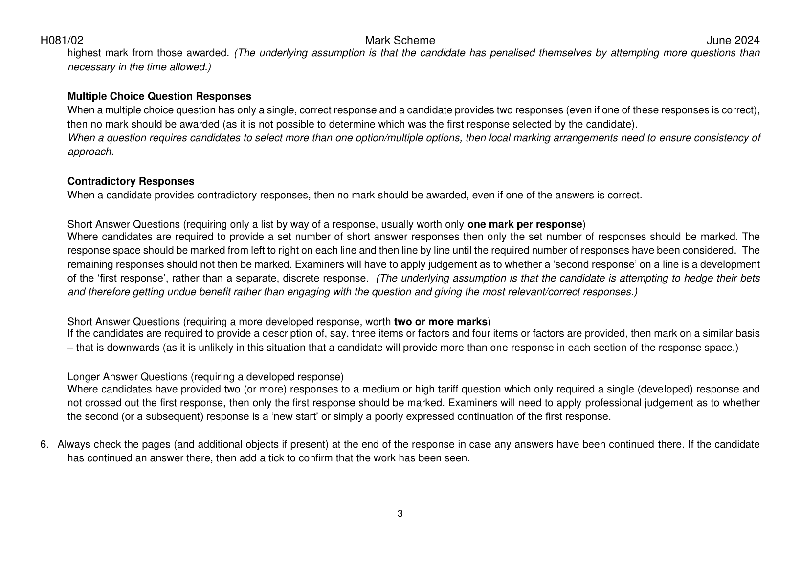 OCR GCE GEOGRAPHY AS LEVEL MARK SCHEME 2024(H081/02:GEOGRAPHICAL DEBATES)