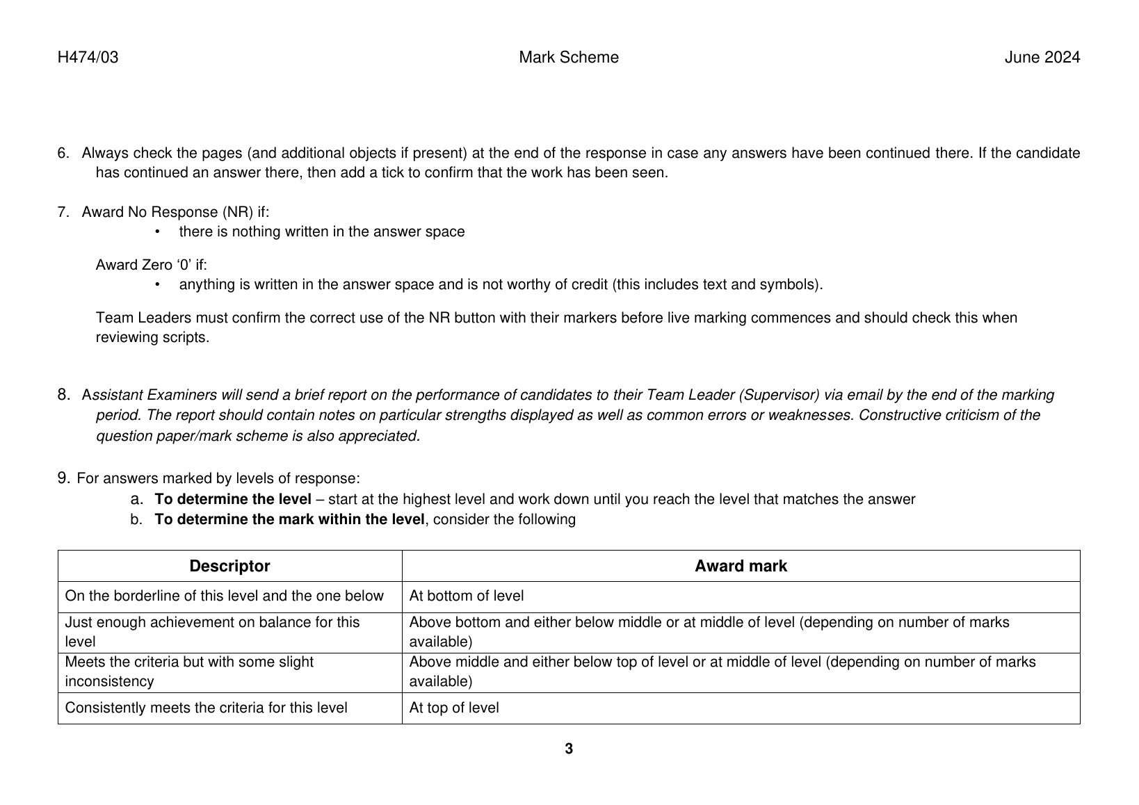 OCR A LEVEL ENGLISH LANGUAGE AND LITERATURE (EMC) PAPER 3 MARK SCHEME 2024 (H474/03: Reading as a writer, writing as a reader)
