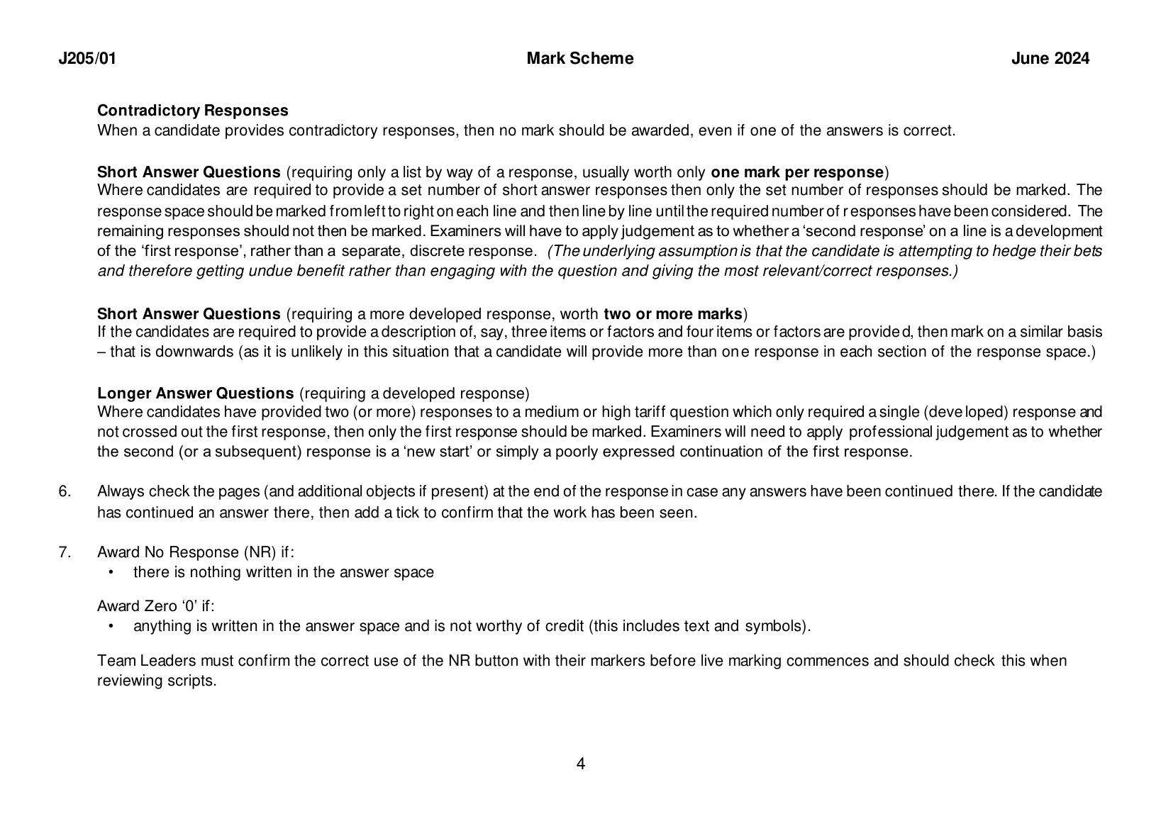 OCR GCSE Economics Paper 1 Mark scheme (J205/01: Introduction to economics)