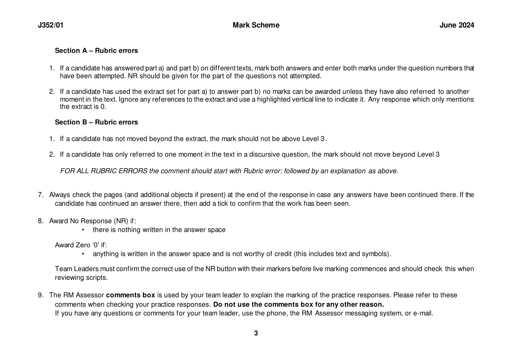 2024 OCR GCSE ENGLISH LITERATURE Mark Scheme Paper 1 (J352/01: Exploring modern and literary heritage texts)