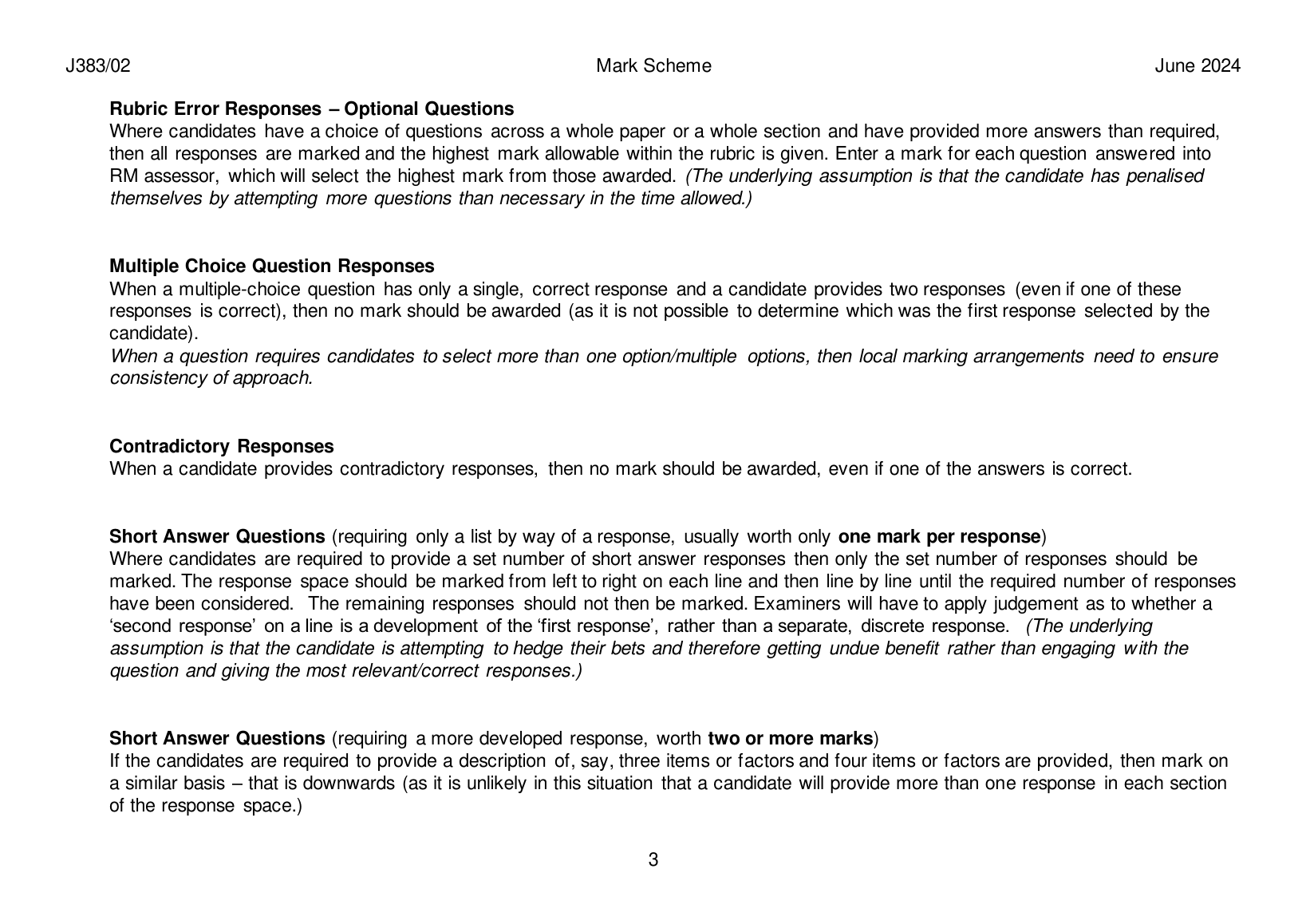 2024 OCR GCSE Geography A Geographical Themes Mark Scheme Paper 2 (J383/02: The world around us)