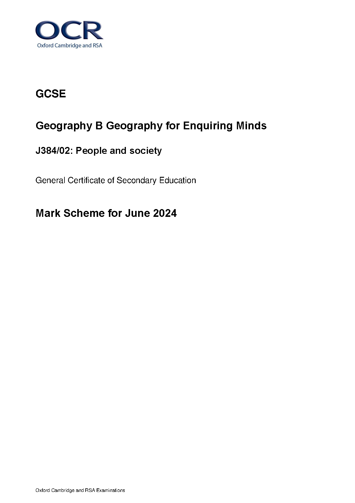 2024 OCR GCSE Geography B Geography for Enquiring Minds Mark Scheme Paper 2 (J384/02: People and society)