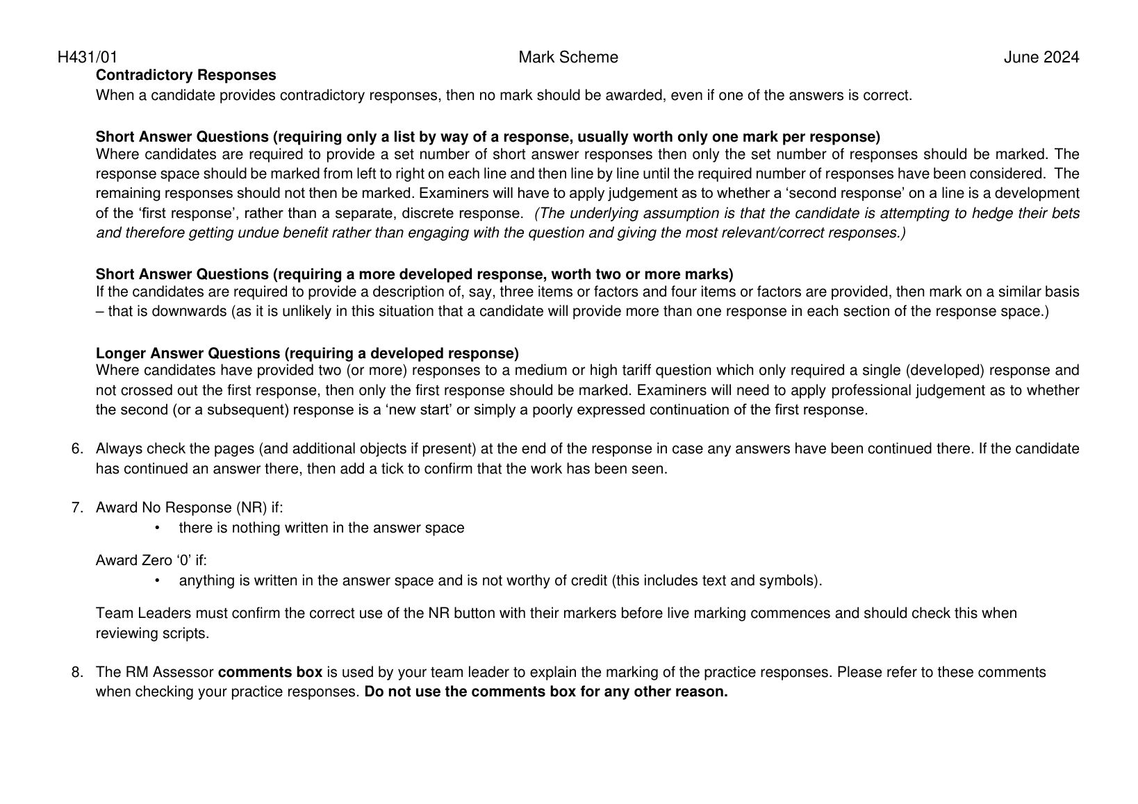 OCR GCE NEW BUSINESS A LEVEL PAPER 1 MARK SCHEME 2024(H431/01:OPERATING IN A LOCAL BUSINESS ENVIRONMENT).DOWNLOAD THE OFFICIAL AND VERIFIED PAPER ON www.leakede...
