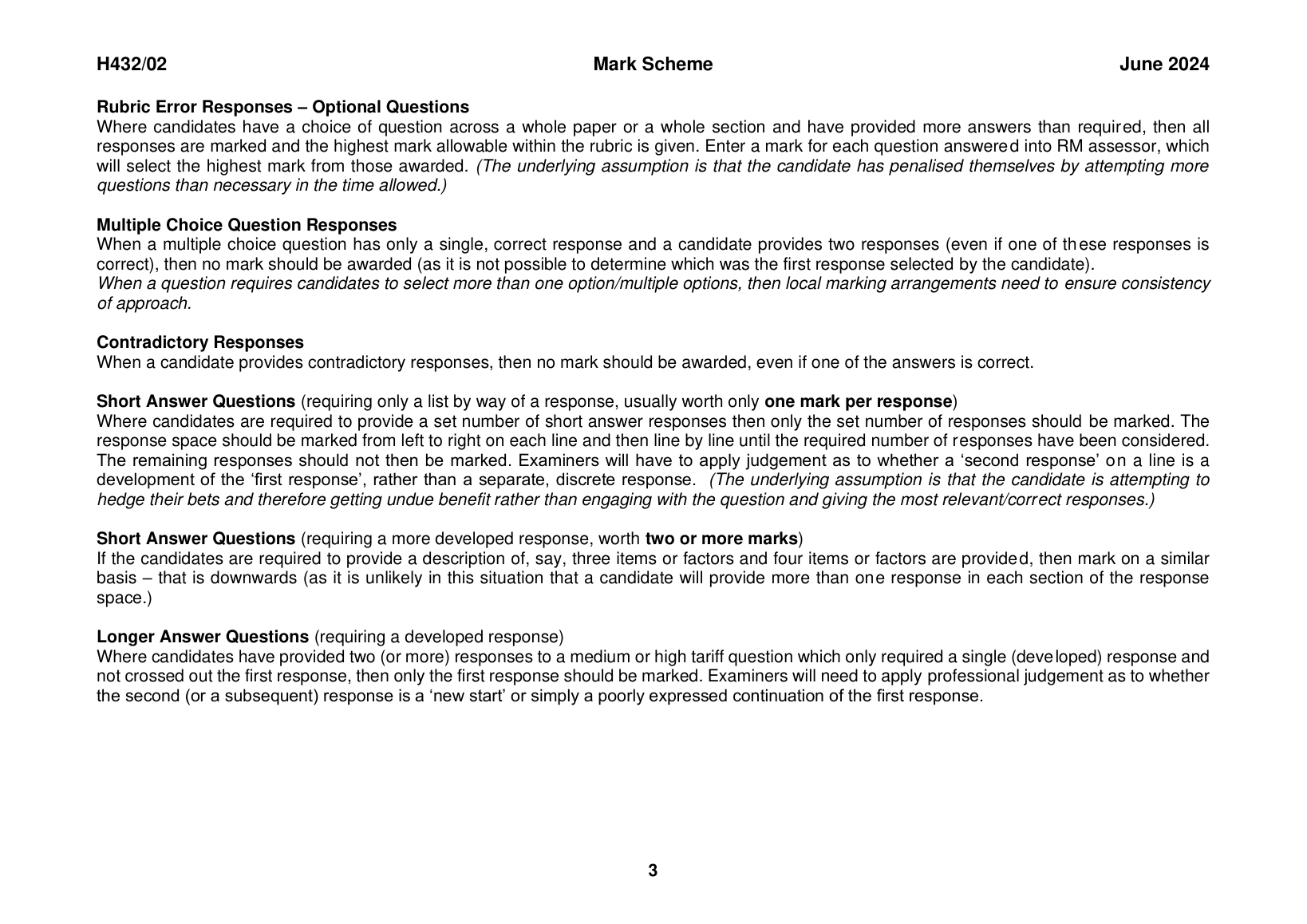 OCR GCE CHEMISTRY A A LEVEL PAPER 2 MARK SCHEME 2024(H432/02:SYNTHESIS AND ANALYTICAL TECHNIQUES)