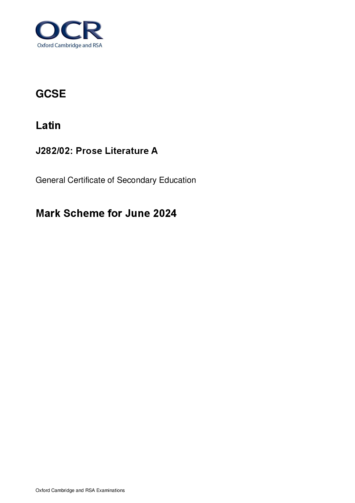 2024 OCR GCSE Latin Mark Scheme Paper 2 (J282/02 Prose Literature A )