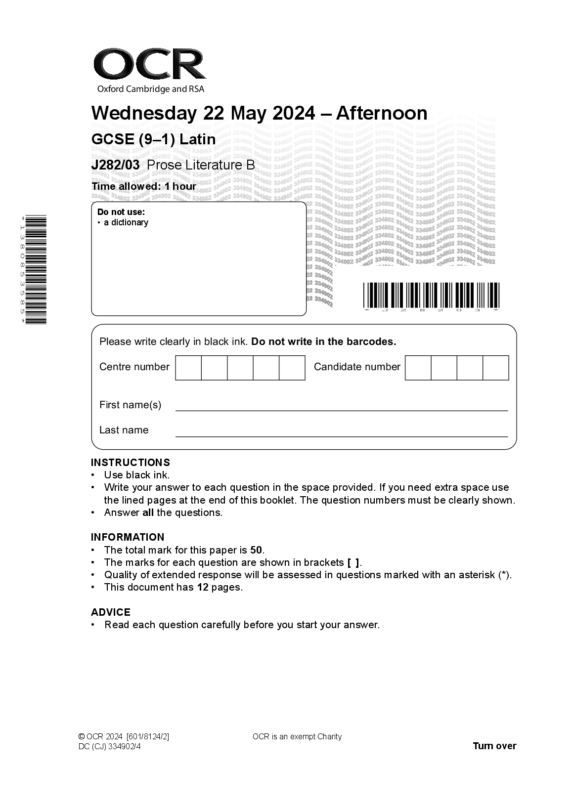 2024 OCR GCSE Latin Paper 3 (J282/03: Prose Literature B)