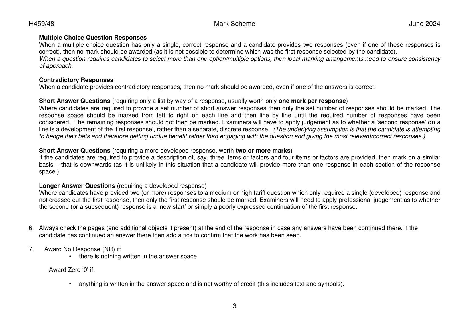 OCR GCE DRAMA AND THEATRE A LEVEL MARK SCHEME 2024(H459/48:DECONSTRUCTING TEXTS FOR PERFORMANCE:WOZA ALBERT)