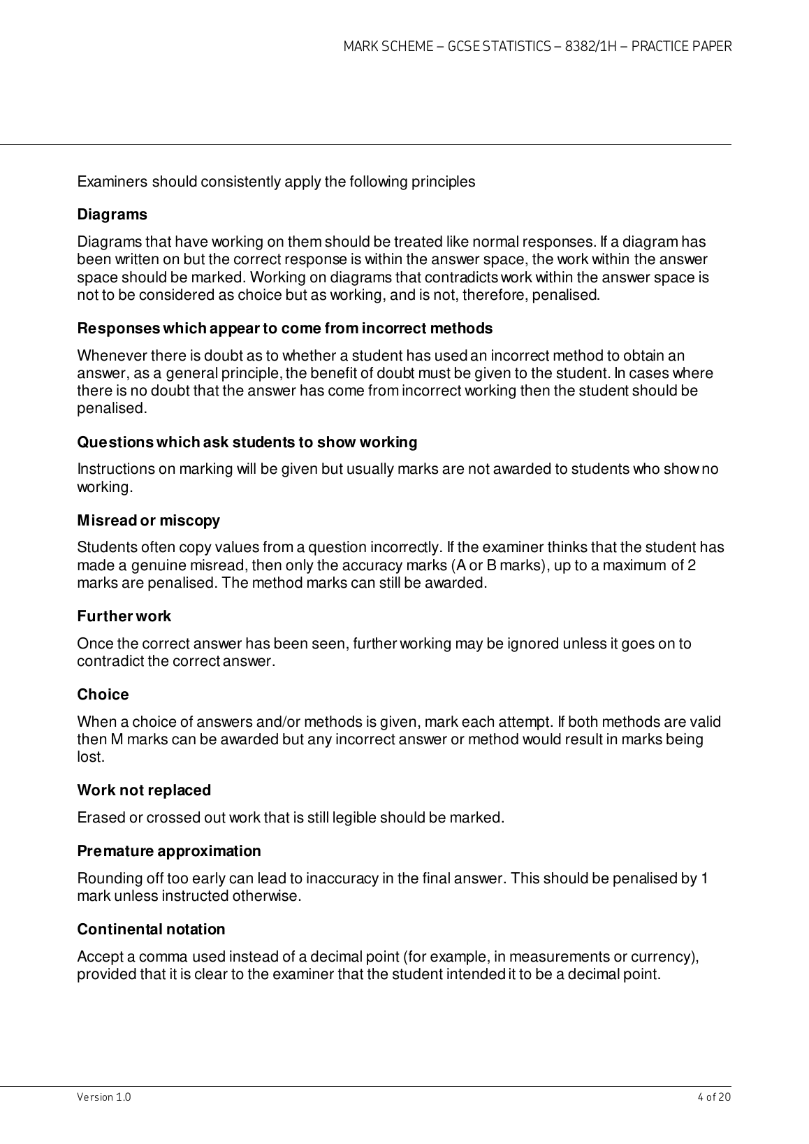AQA GCSE STATISTICS PAPER 1 MARK SCHEME 2023 (8382/1H: HIGHER TIER)