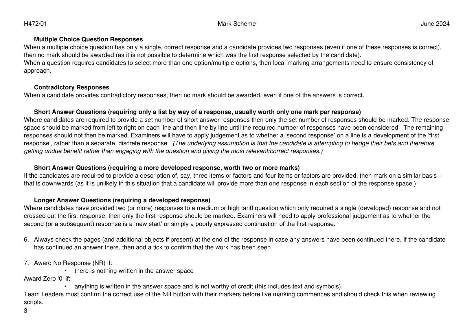 OCR GCE ENGLISH LITERATURE A LEVEL PAPER 1 MARK SCHEME 2024(H472/01:DRAMA AND POETRY PRE-1900)