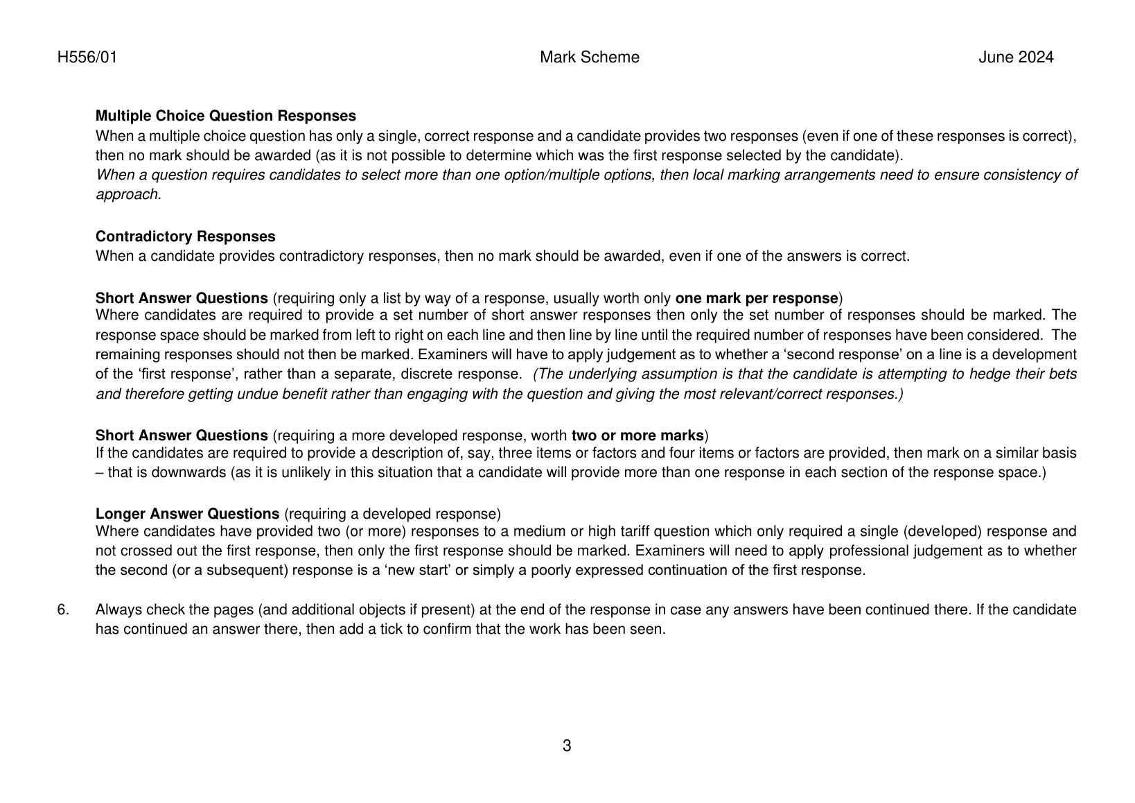 OCR GCE PHYSICS A PAPER 1 A LEVEL MARK SCHEME 2024(556/01:MODELLING PHYSICS)