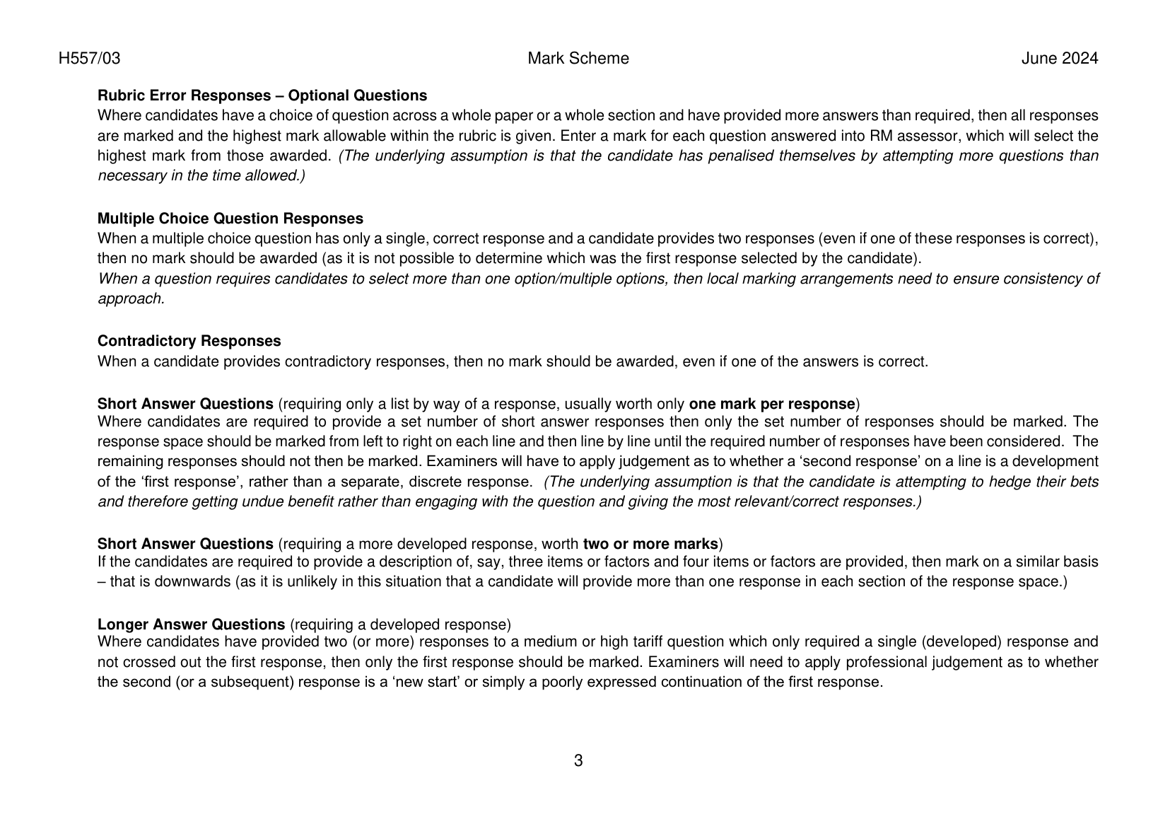 OCR GCE PHYSICS B PAPER 3 A LEVEL MARK SCHEME 2024(557/03:PRACTICAL SKILLS IN PHYSICS)