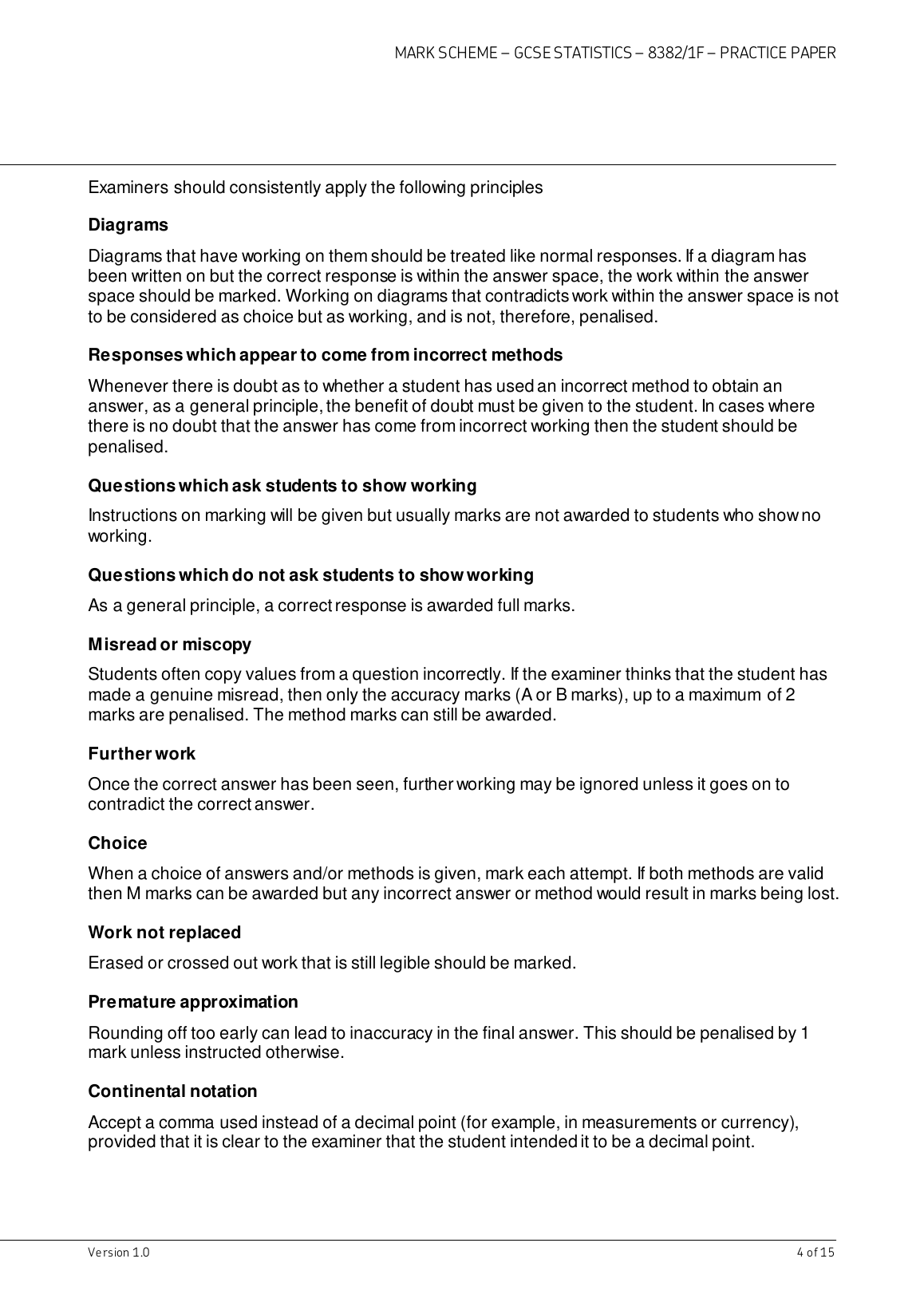 AQA GCSE STATISTICS PAPER 1 MARK SCHEME 2023 (8382/1F: FOUNDATION TIER)