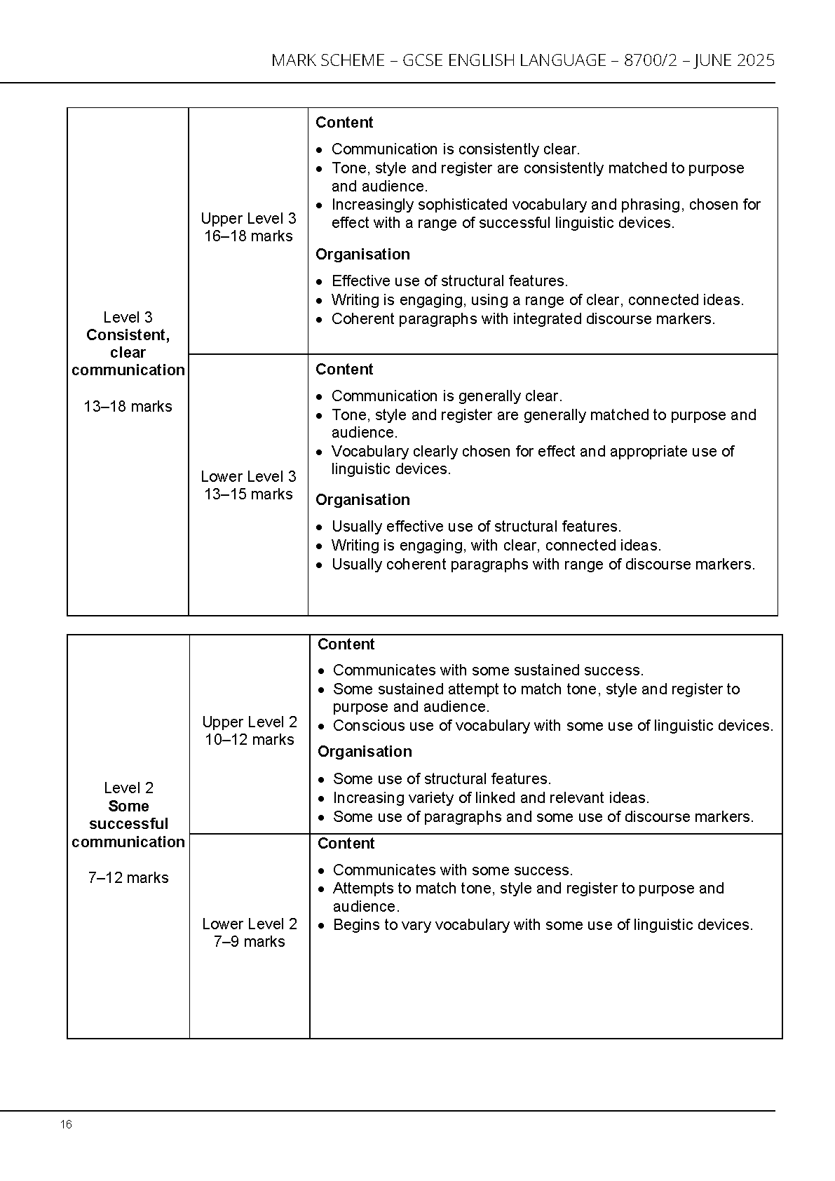 MERGED 2025 AQA GCSE ENGLISH LANGUAGE Paper 2, Mark Scheme + Insert (8700/2: Writers’ viewpoints and perspectives)