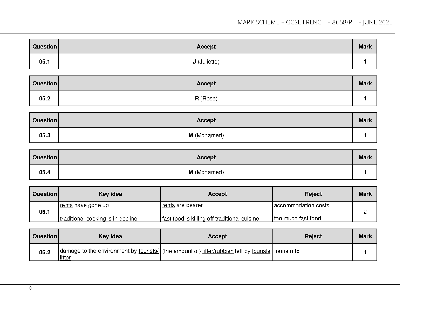 MERGED 2025 AQA FRENCH Paper 2 and Mark Scheme (8658/SF+SH: Speaking Foundation and Higher Tier)