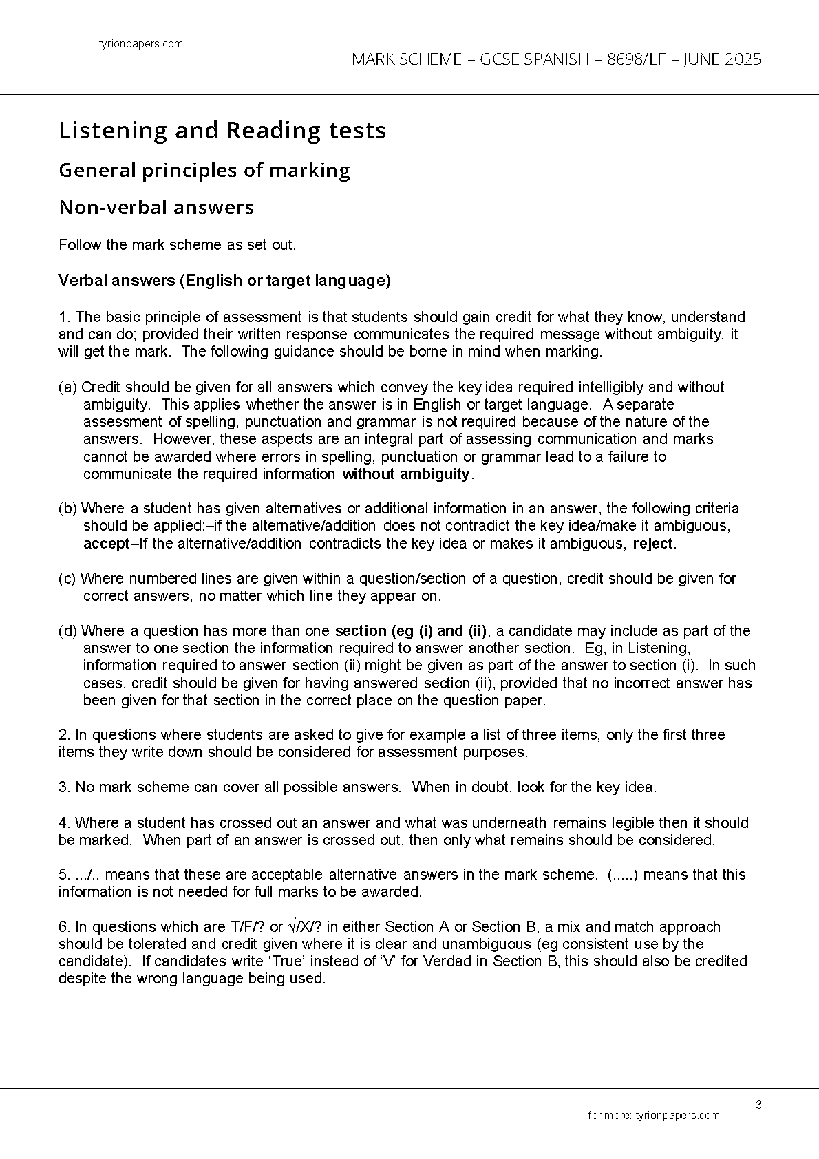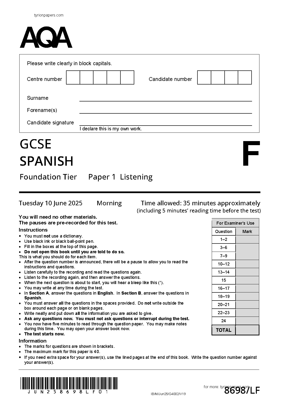 MERGED 2025 AQA GCSE SPANISH Paper 1 and Mark Scheme (8698/LF: Listening Foundation Tier)