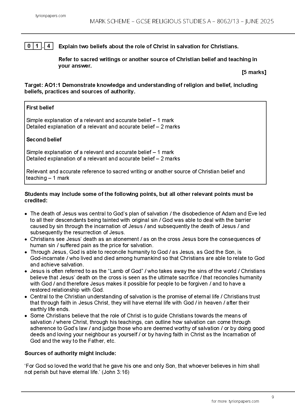MERGED 2025 AQA GCSE RELIGIOUS STUDIES A Paper 1 Question Paper and Mark Scheme (8062/13: Christianity)