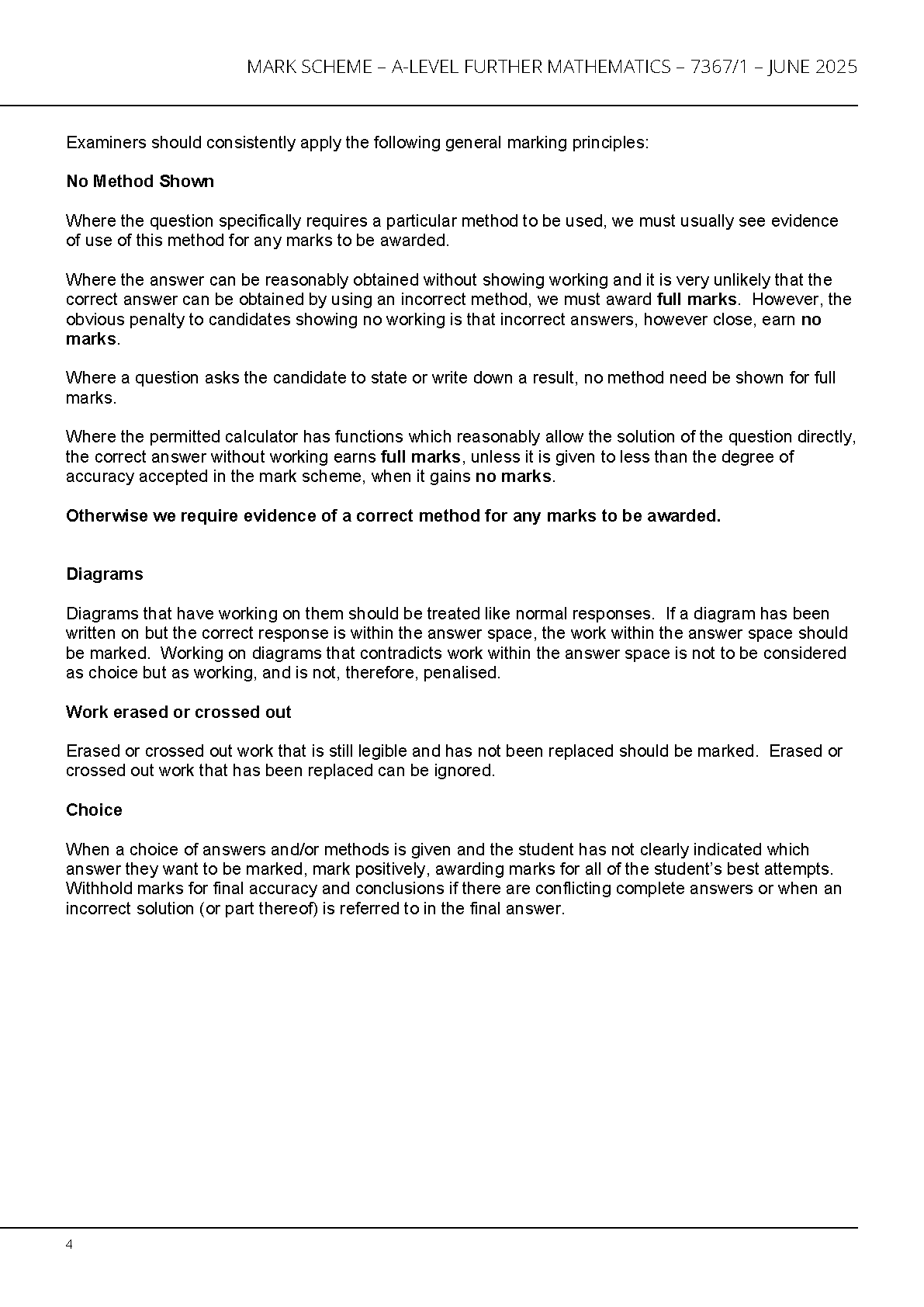2025 AQA A Level FURTHER MATHEMATICS Paper 1 and Mark Scheme Combined (7367/1)