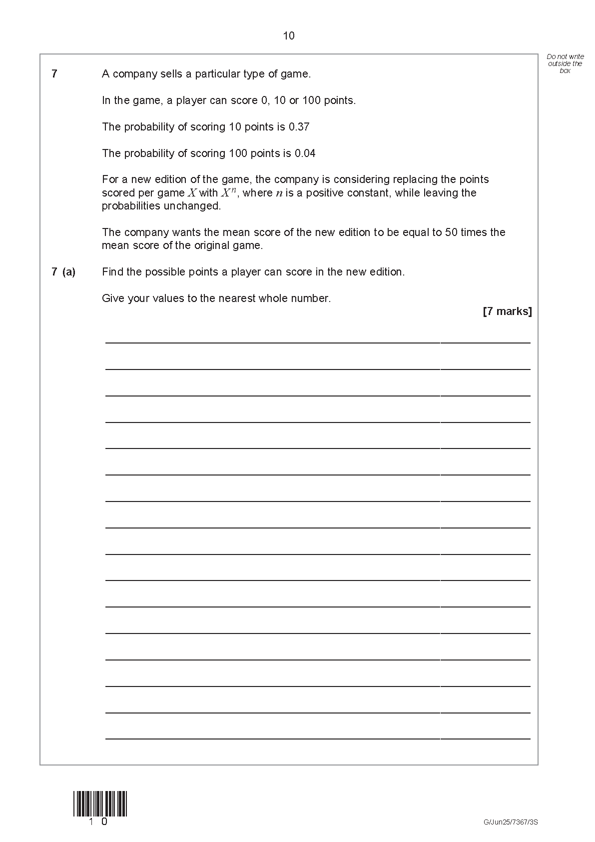 2025 AQA A Level FURTHER MATHEMATICS Paper 3 and Mark Scheme Combined (7367/3S: Statistics)
