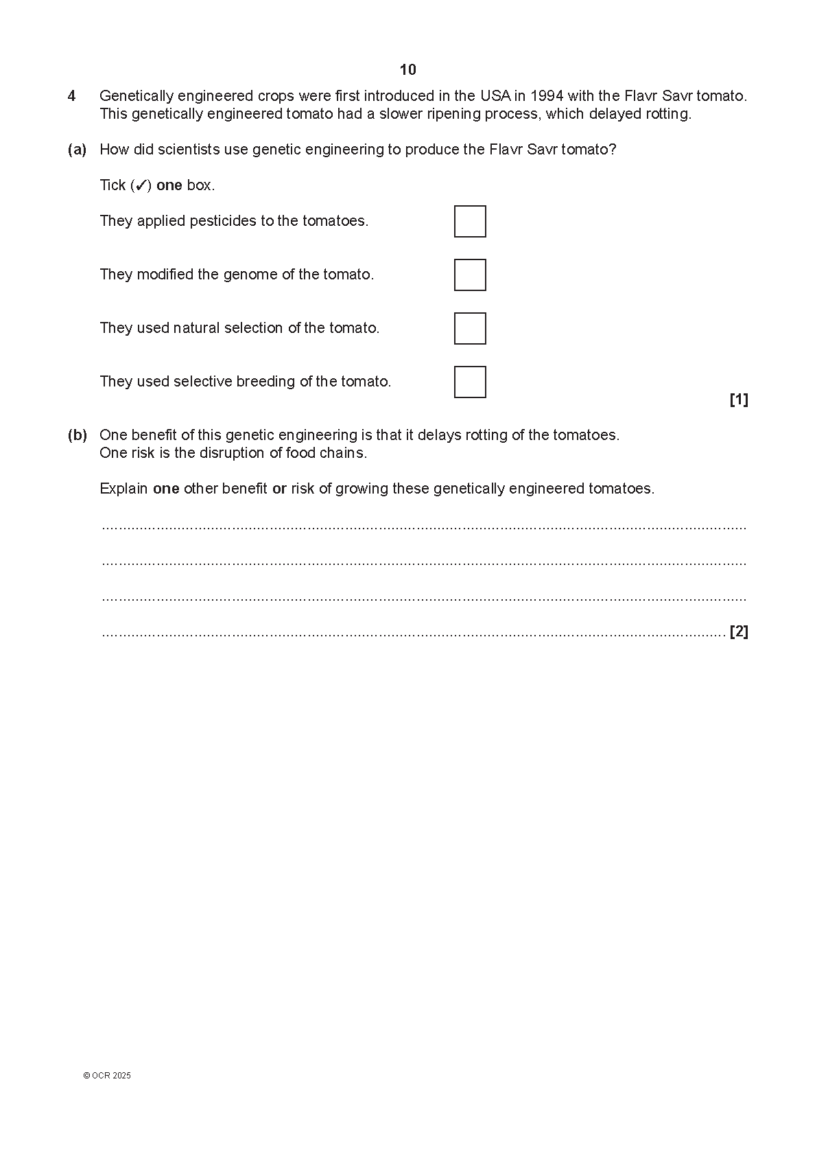 This paper assesses students’ knowledge and understanding of foundation-tier biology topics, including key concepts, practical skills, and data interpretation.