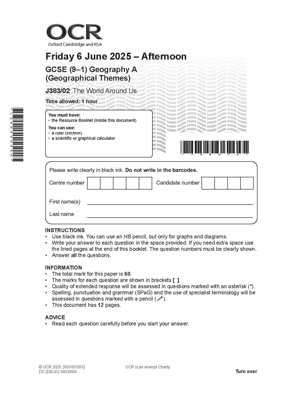 2025 OCR GCSE Geography A Geographical Themes Paper 2 and Mark Scheme Combined (J383/02 The World Around Us)