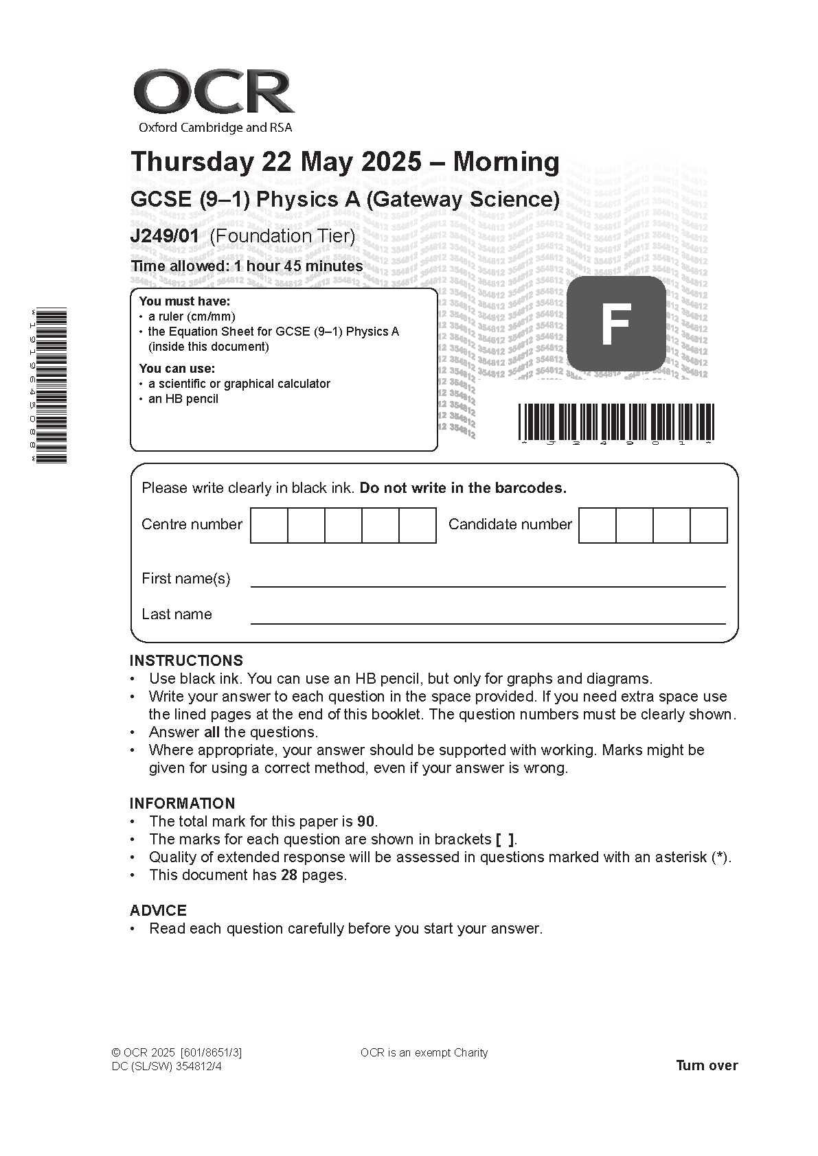 2025 OCR GCSE Physics A Gateway Paper 1 and Mark Scheme Combined (J249/01 (Foundation Tier))