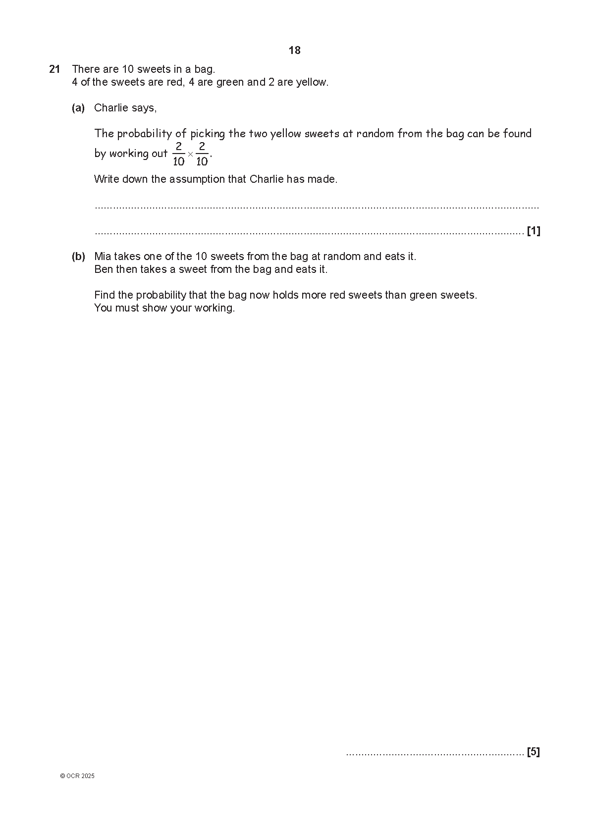 2025 OCR GCSE Mathematics Paper 5 and Mark Scheme Combined (J560/05 Paper 5 (Higher Tier)