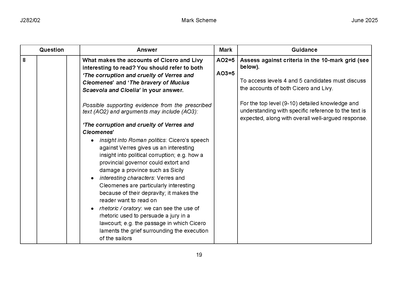 OCR GCSE Latin Paper 2 and Mark Scheme Combined (J282/02 Prose Literature A)