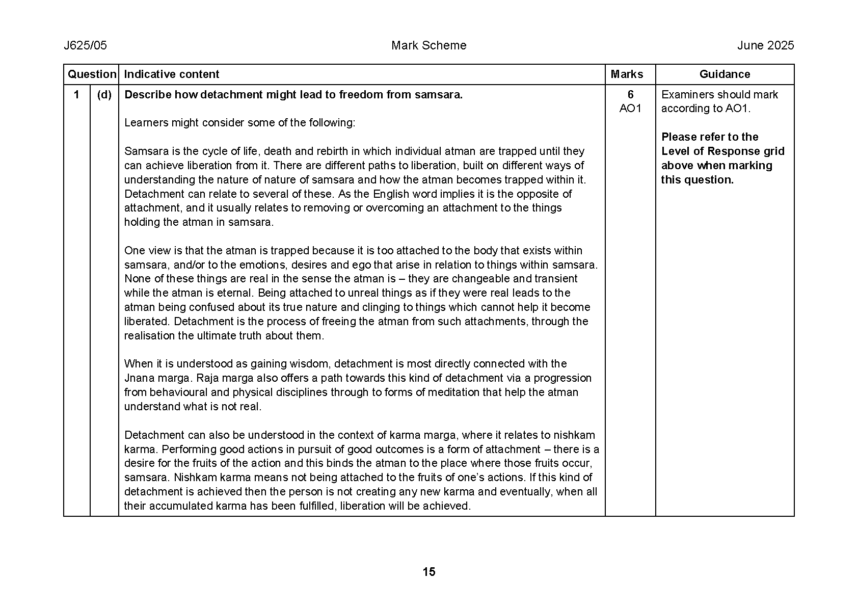 2025 OCR GCSE Religious Studies Paper 5 and Mark Scheme Combined (J625/05 Hinduism Beliefs and teachings & Practices)
