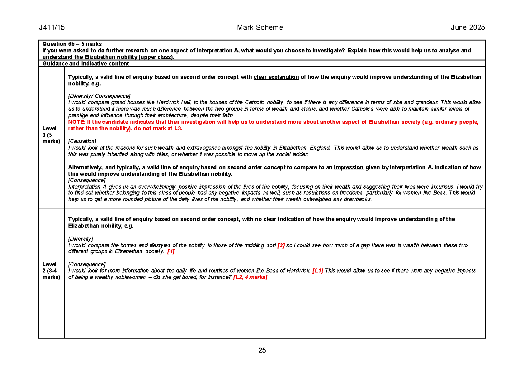 2025 OCR GCSE History B (Schools History Project) Paper 15 and Mark Scheme Combined (J411/15 Crime and Punishment, c.1250 to present with The Elizabethans, 1580–1603)