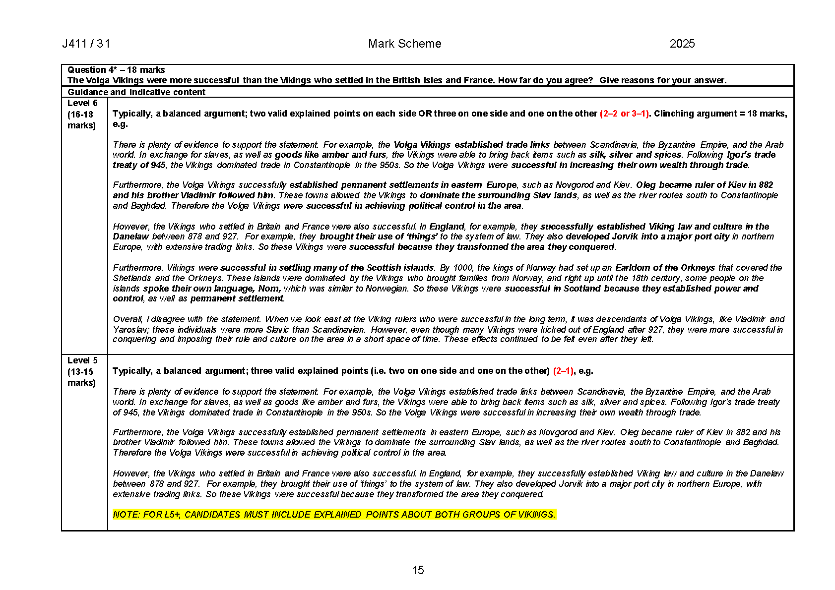 2025 OCR GCSE History B (Schools History Project) Paper 31 and Mark Scheme Combined (J411/31 Viking Expansion, c.750–c.1050 with The First Crusade, c.1070–1100)