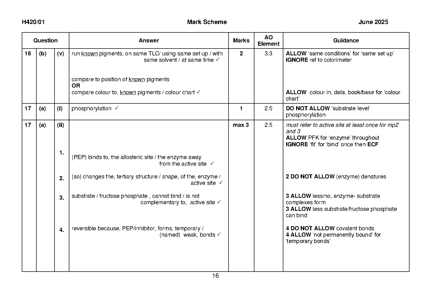 2025 OCR A Level Biology A Paper 1 and Mark Scheme Combined (H420/01: Biological processes)
