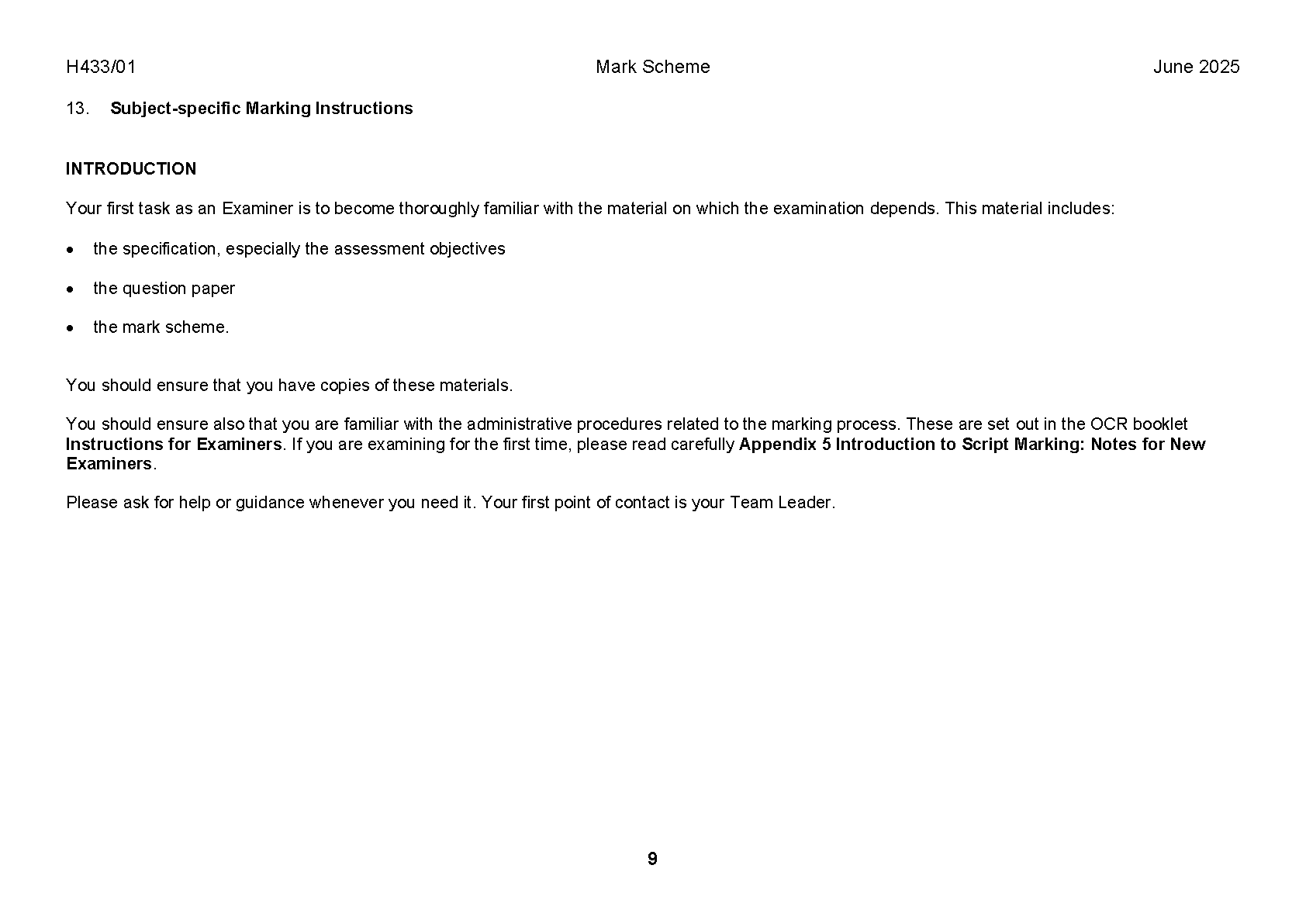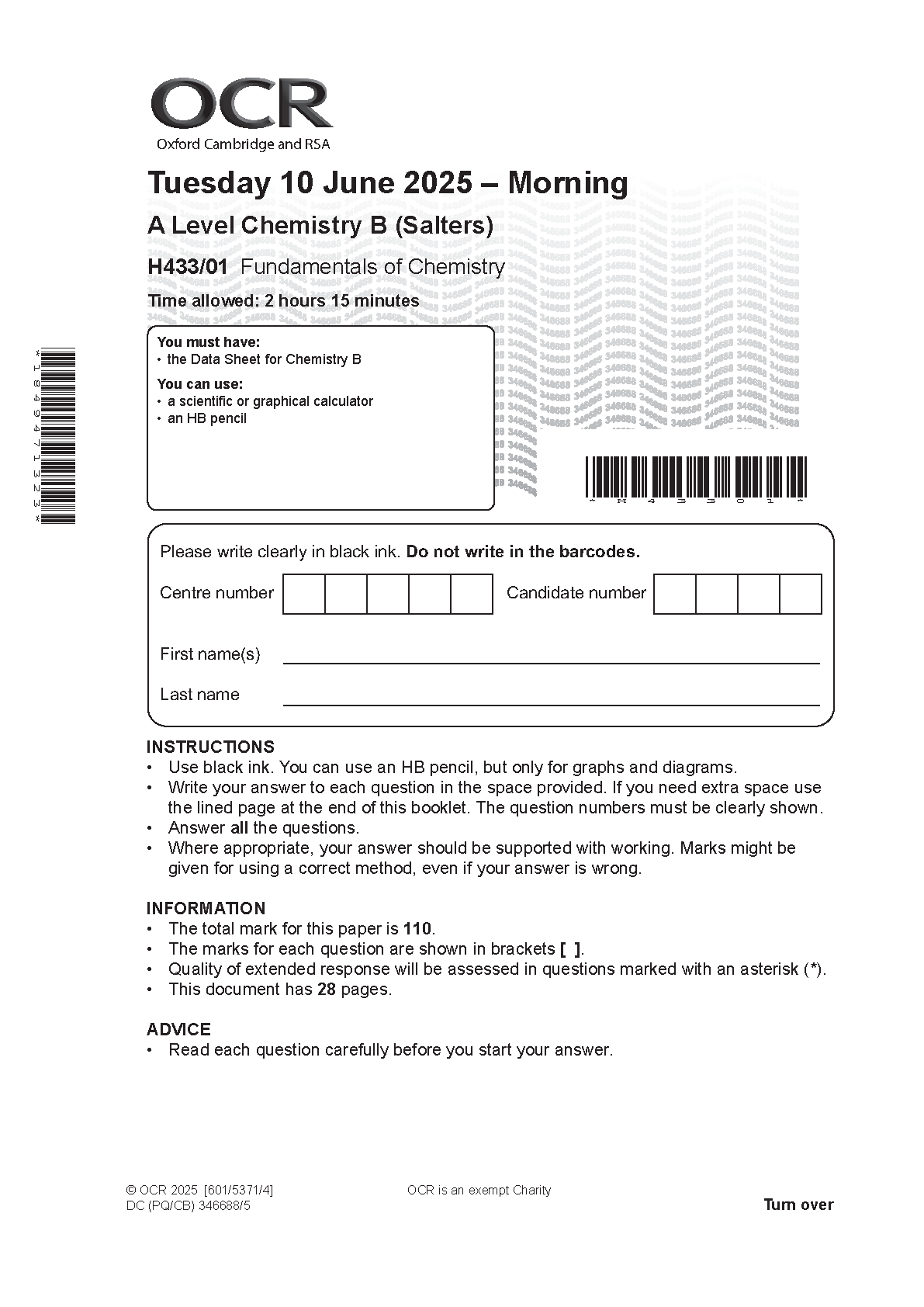 2025 OCR A Level Chemistry B Paper 1 and Mark Scheme Combined (H433/01 Fundamentals of Chemistry)