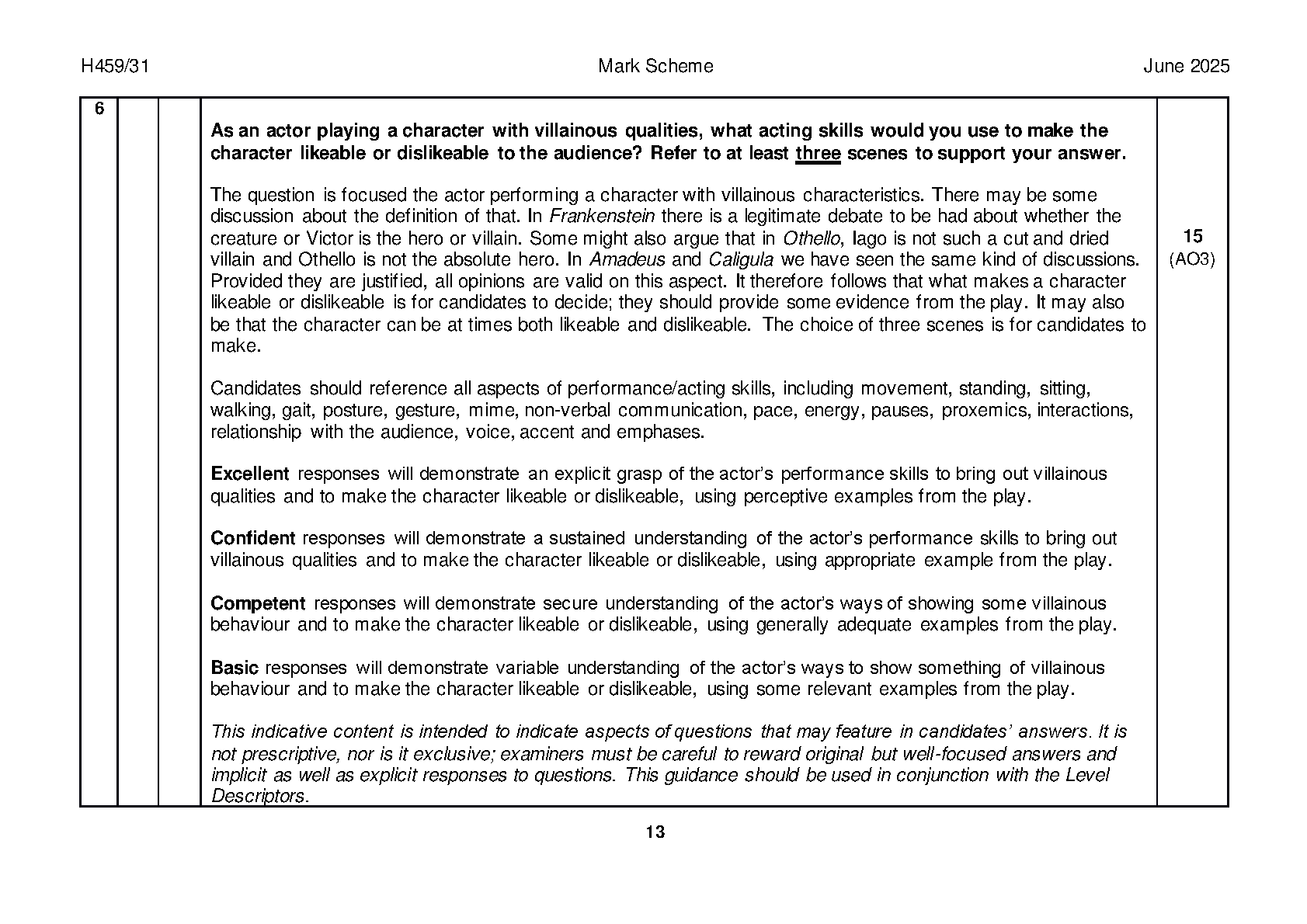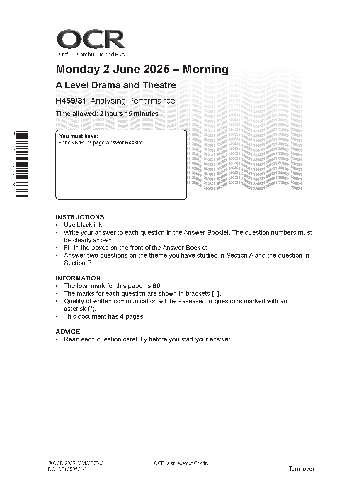 2025 OCR A Level Drama and Theatre Paper 31 and Mark Scheme Combined (H459/31 Analysing Performance)