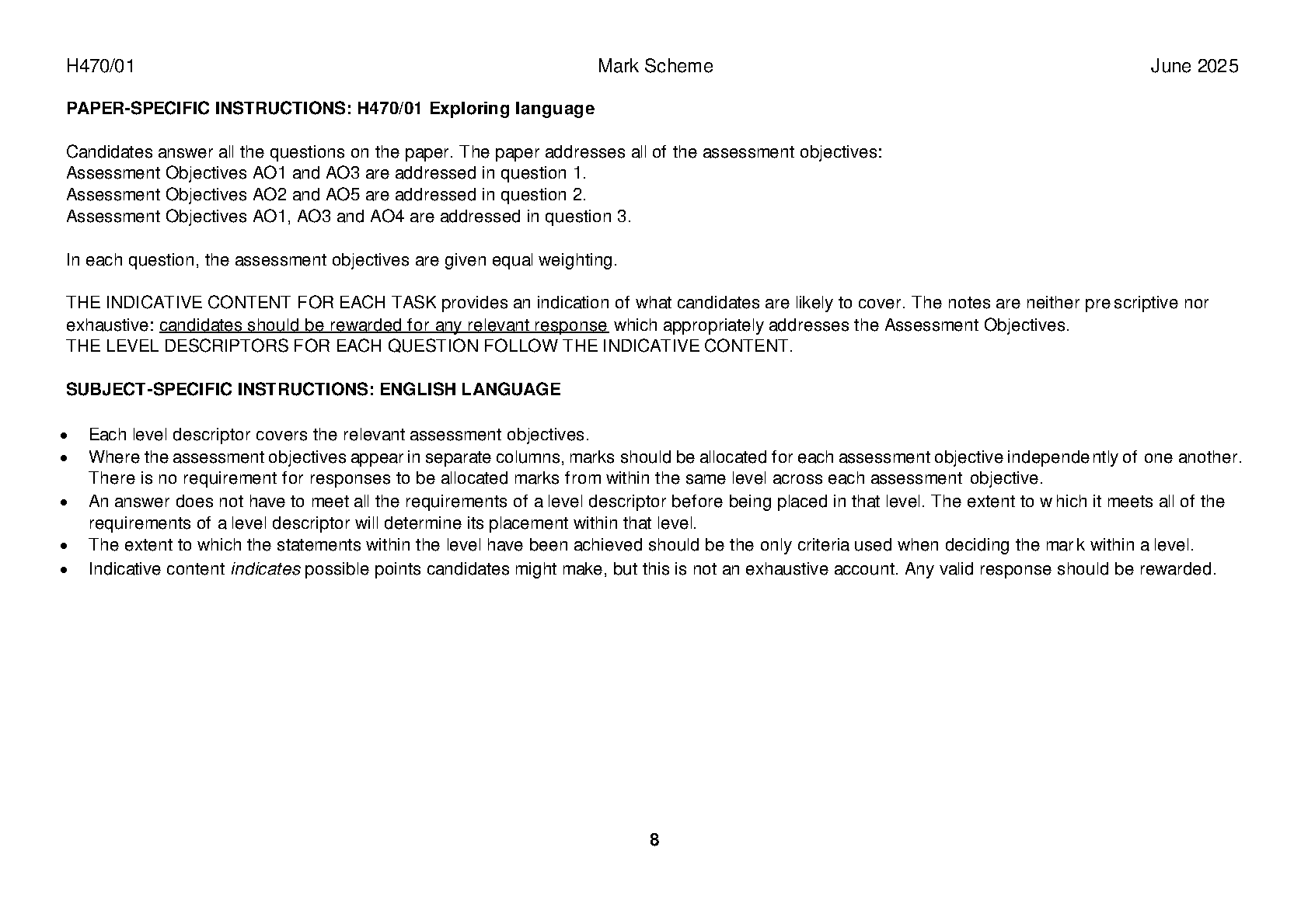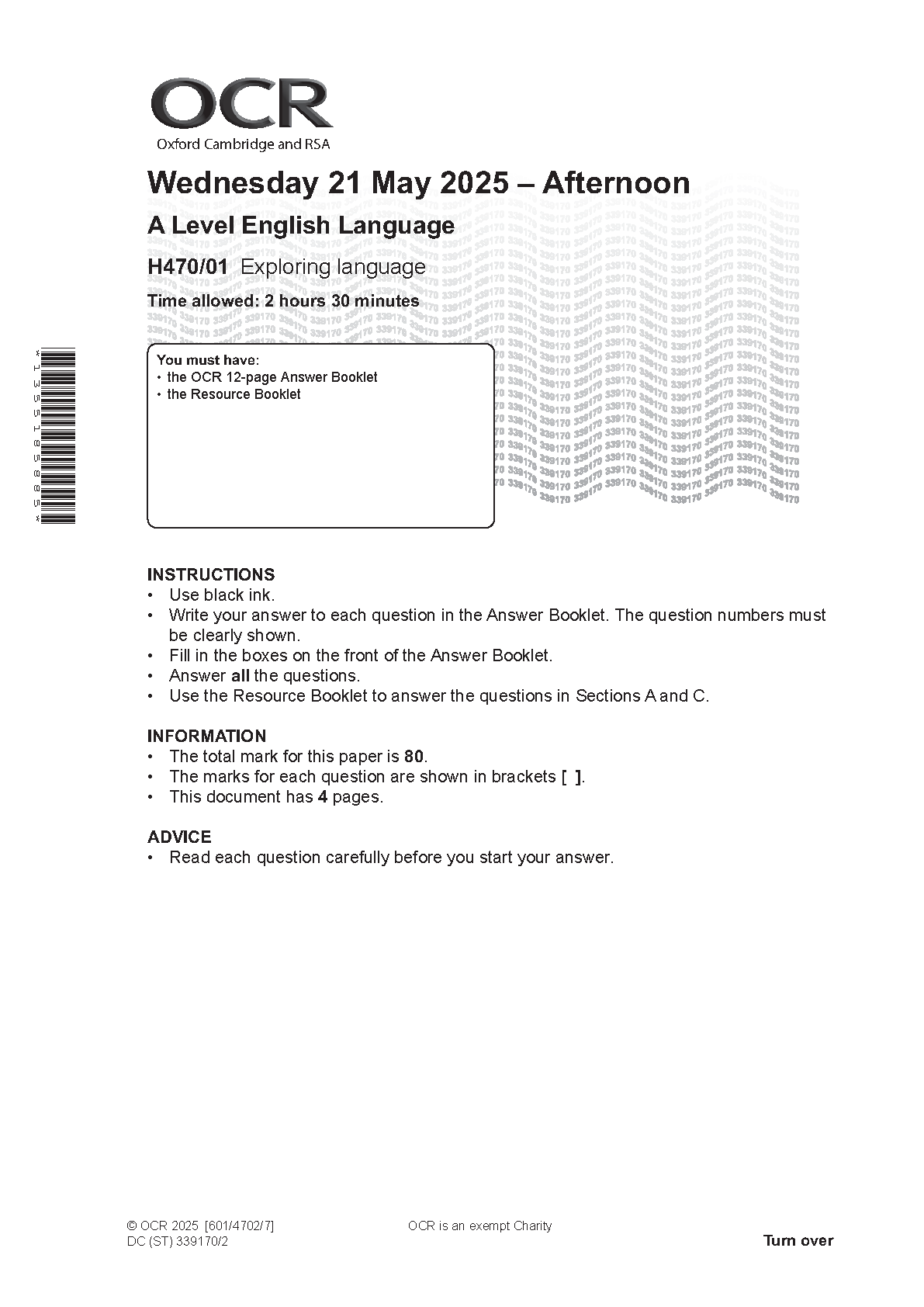 2025 OCR A Level English Language Paper 1 and Mark Scheme Combined (H470/01 Exploring language)
