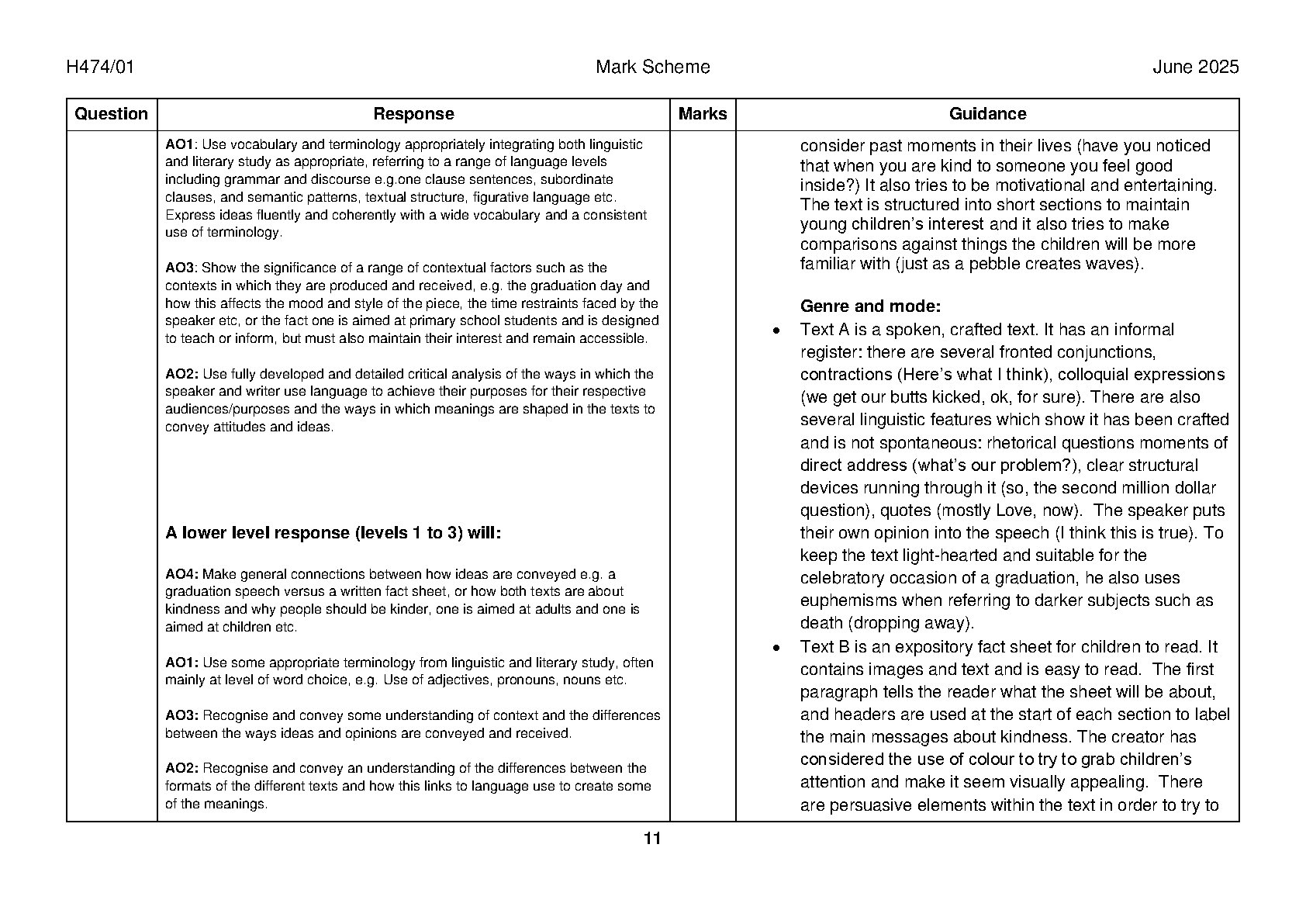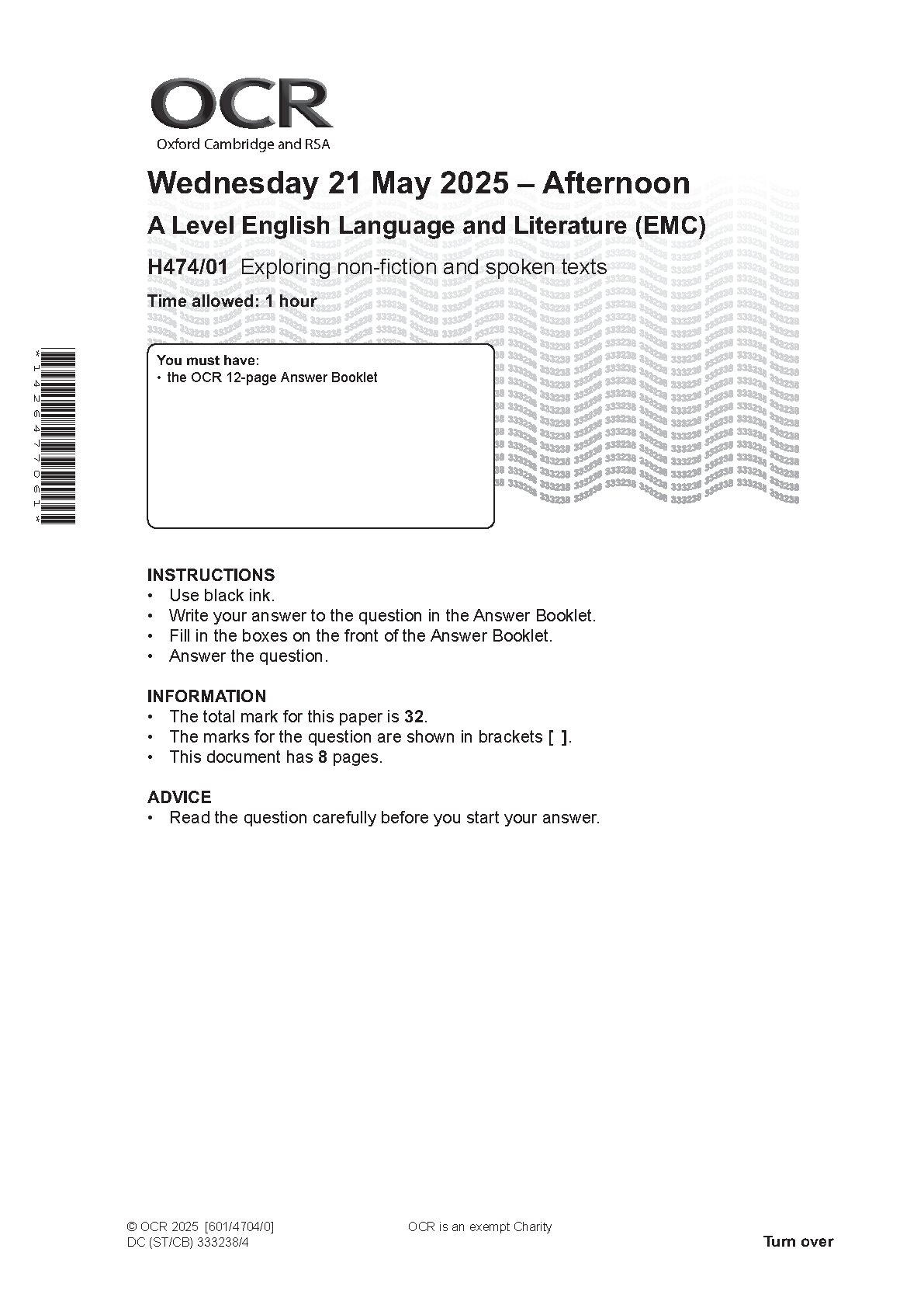 2025 OCR A Level English Language and Literature Paper 1 and Mark Scheme Combined (H474/01 Exploring non-fiction and spoken texts)