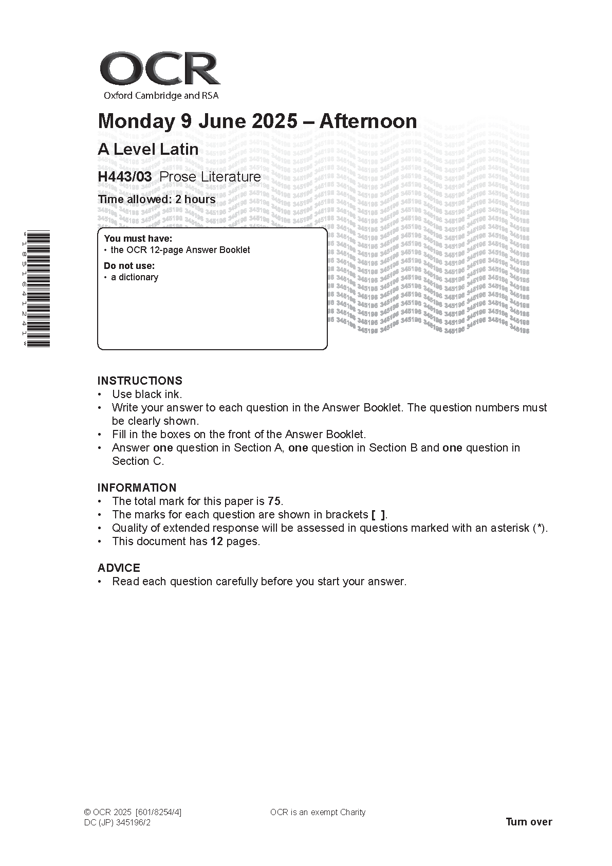 2025 OCR A Level Latin Paper 3 and Mark Scheme Combined (H443/03 Prose Literature)