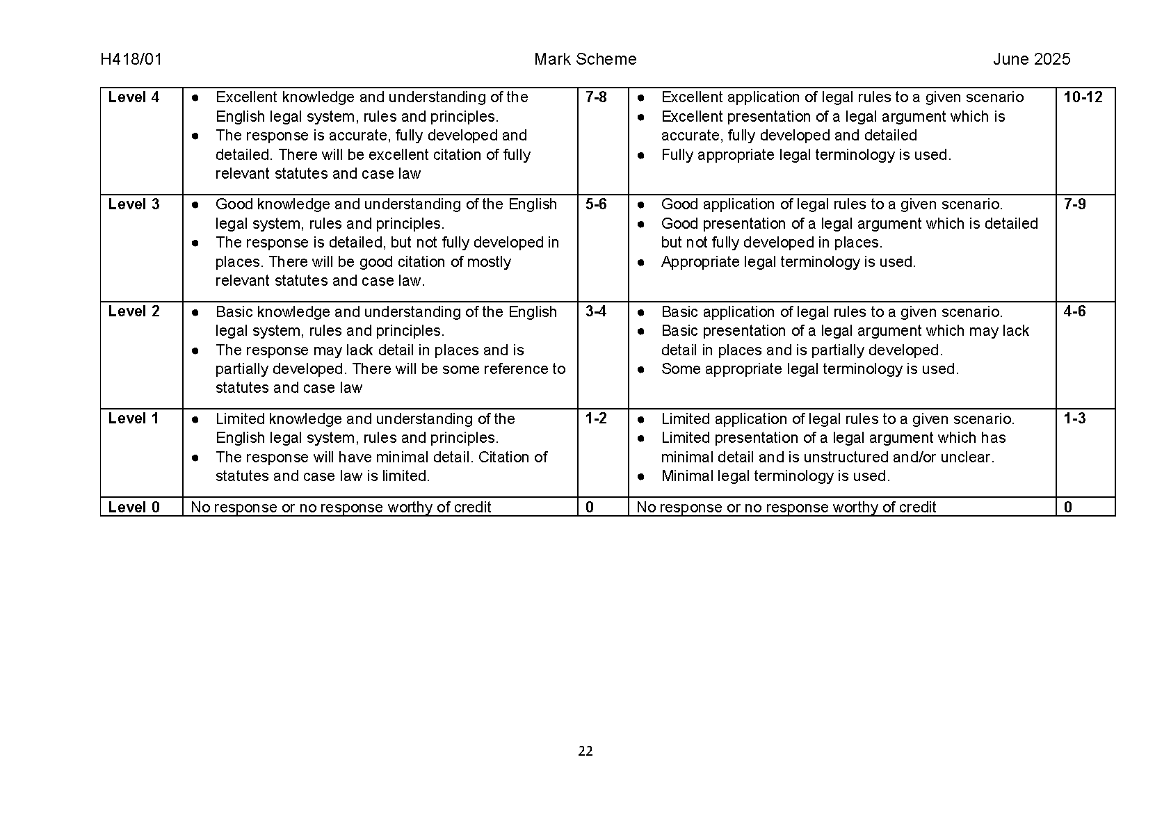 2025 OCR A Level Law Paper 1 and Mark Scheme Combined (H418/01 The legal system and criminal law)