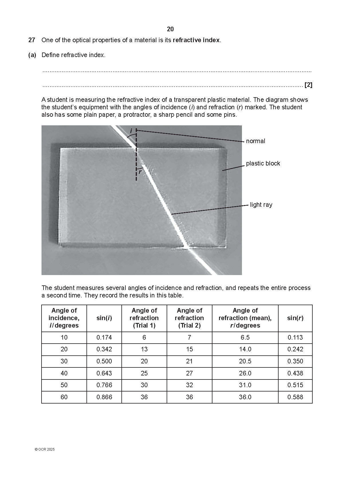 2025 OCR AS Level Physics B Paper 1 and Mark Scheme Combined (H157/01 Foundations of physics)