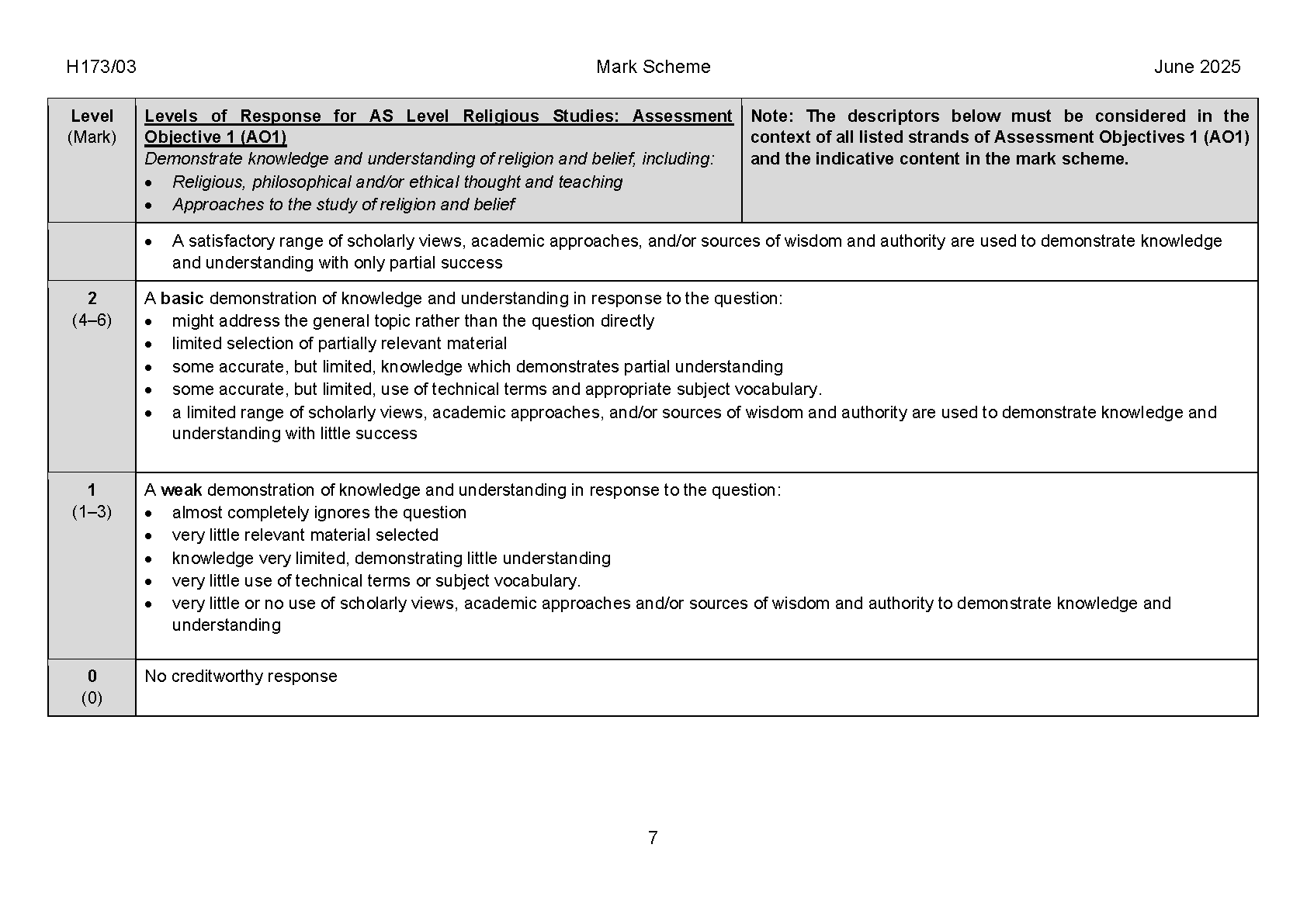 2025 OCR AS Level Religious Studies Paper 3 and Mark Scheme Combined (H173/03 Developments in Christian thought)