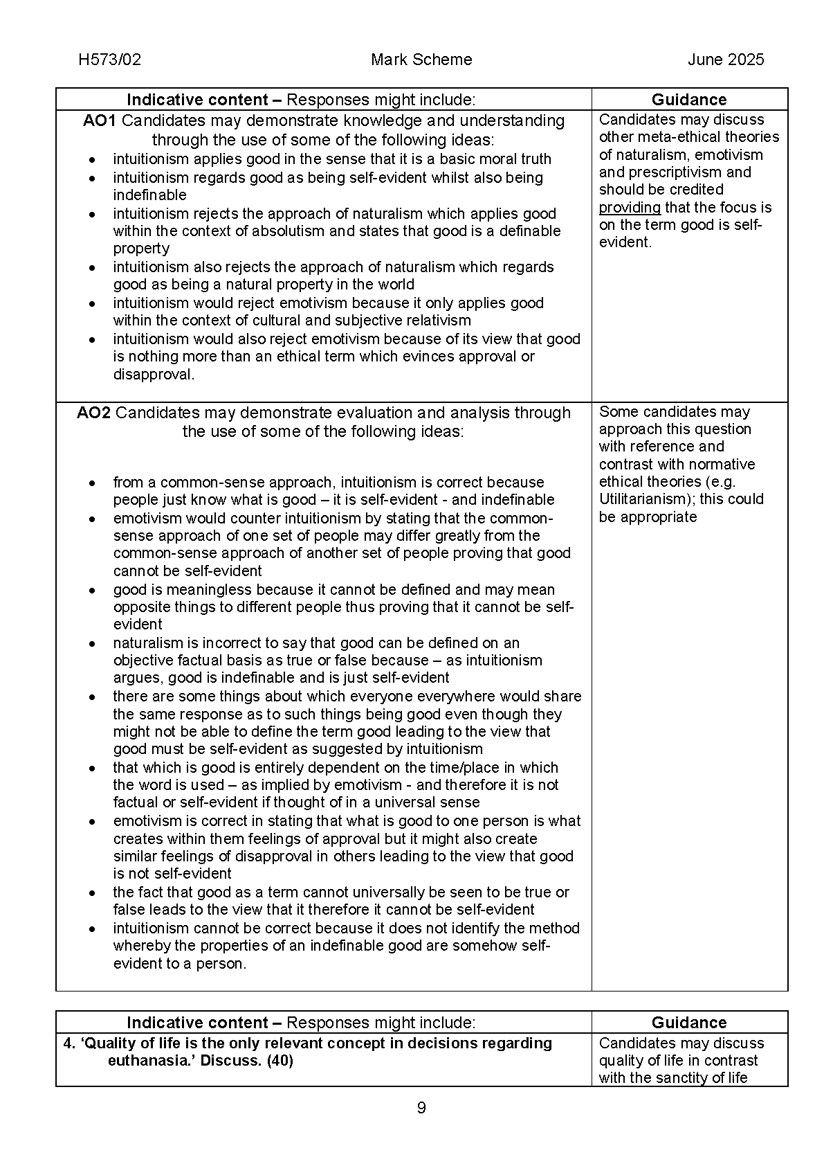 2025 OCR A Level Religious Studies Paper 2 and Mark Scheme Combined (H573/02 Religion and ethics)