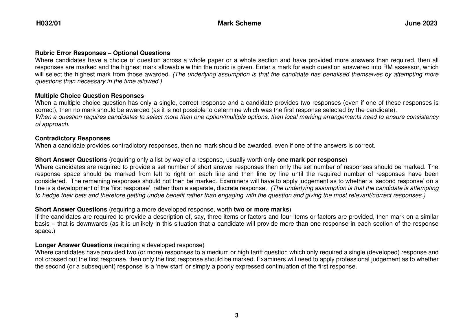 OCR AS LEVEL CHEMISTRY A PAPER 1 MARK SCHEME 2023 (H032/01: Breadth in chemistry)