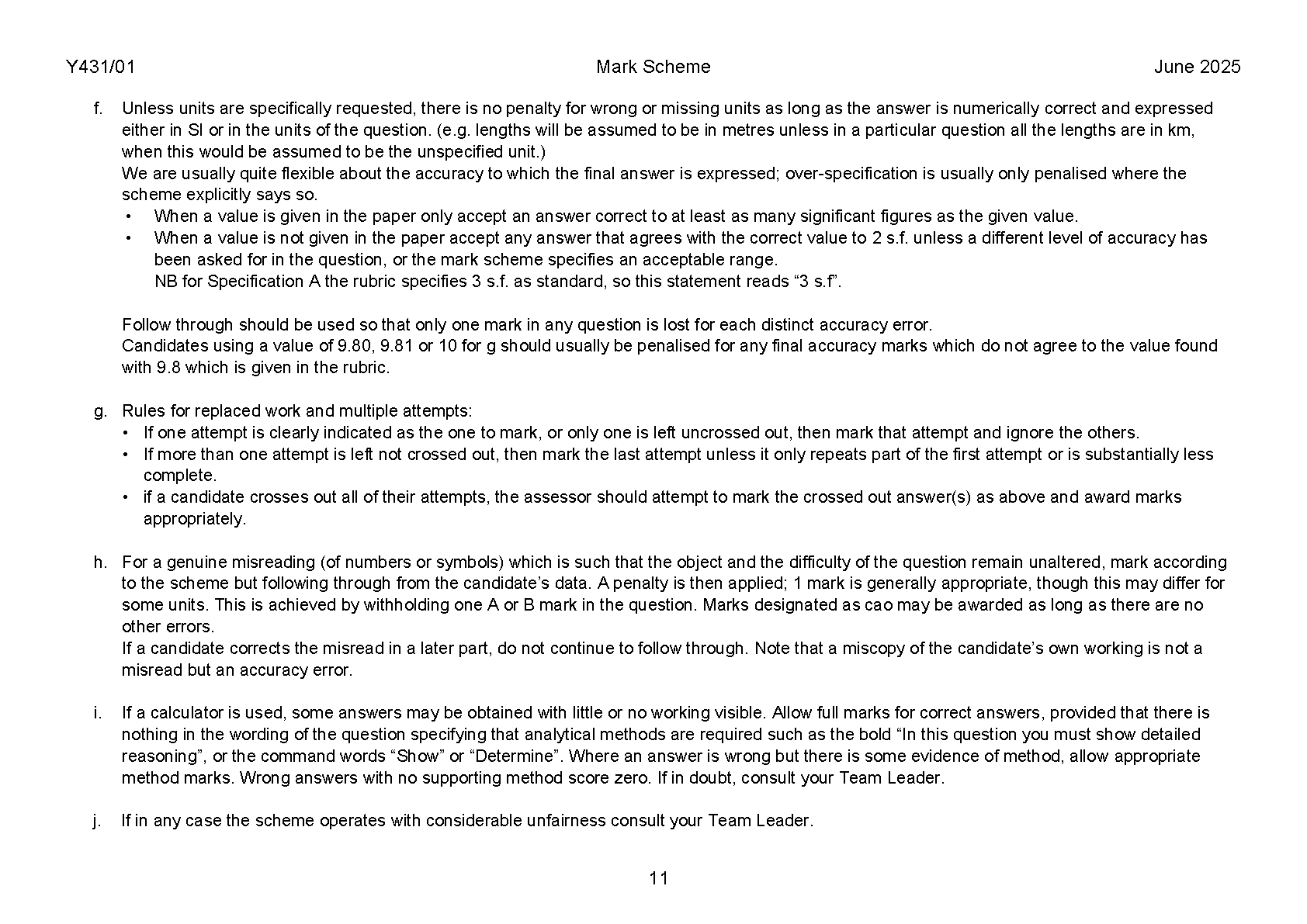 2025 OCR A Level Further Mathematics B (MEI) Paper 1 and Mark Scheme + Insert Combined (Y422/01 Mechanics Minor)