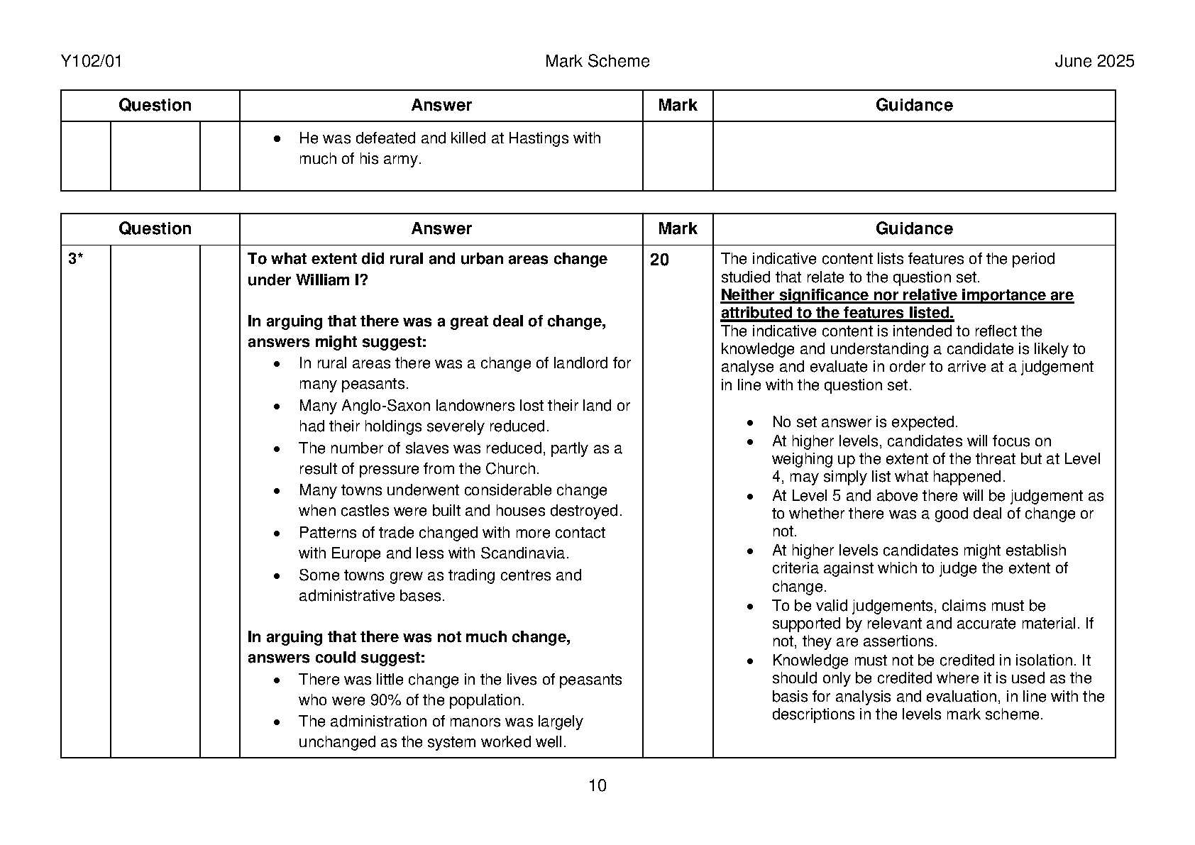 2025 OCR A Level History A Paper 1 and Mark Scheme Combined (Y102/01 Anglo-Saxon England and the Norman Conquest 1035–1107)