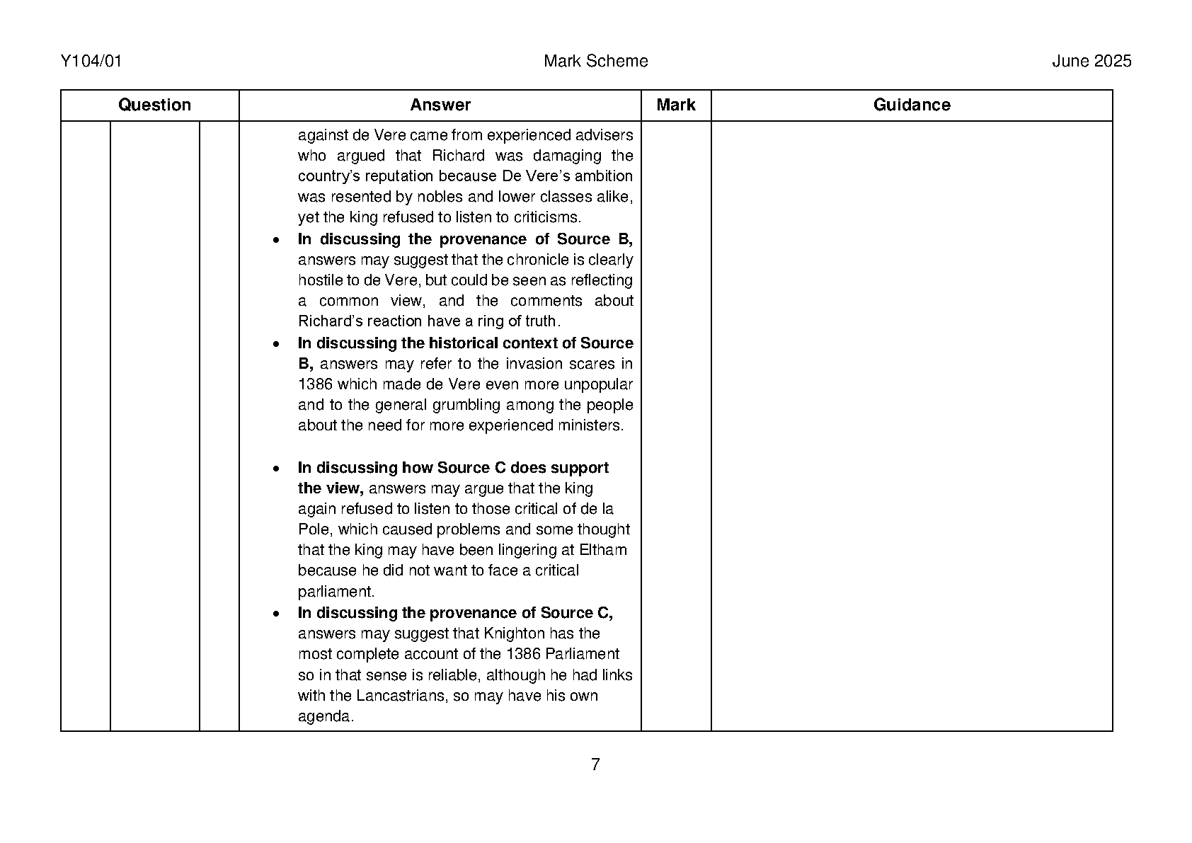 2025 OCR A Level History A Paper 1 and Mark Scheme Combined (Y104/01 England 1377–1455)