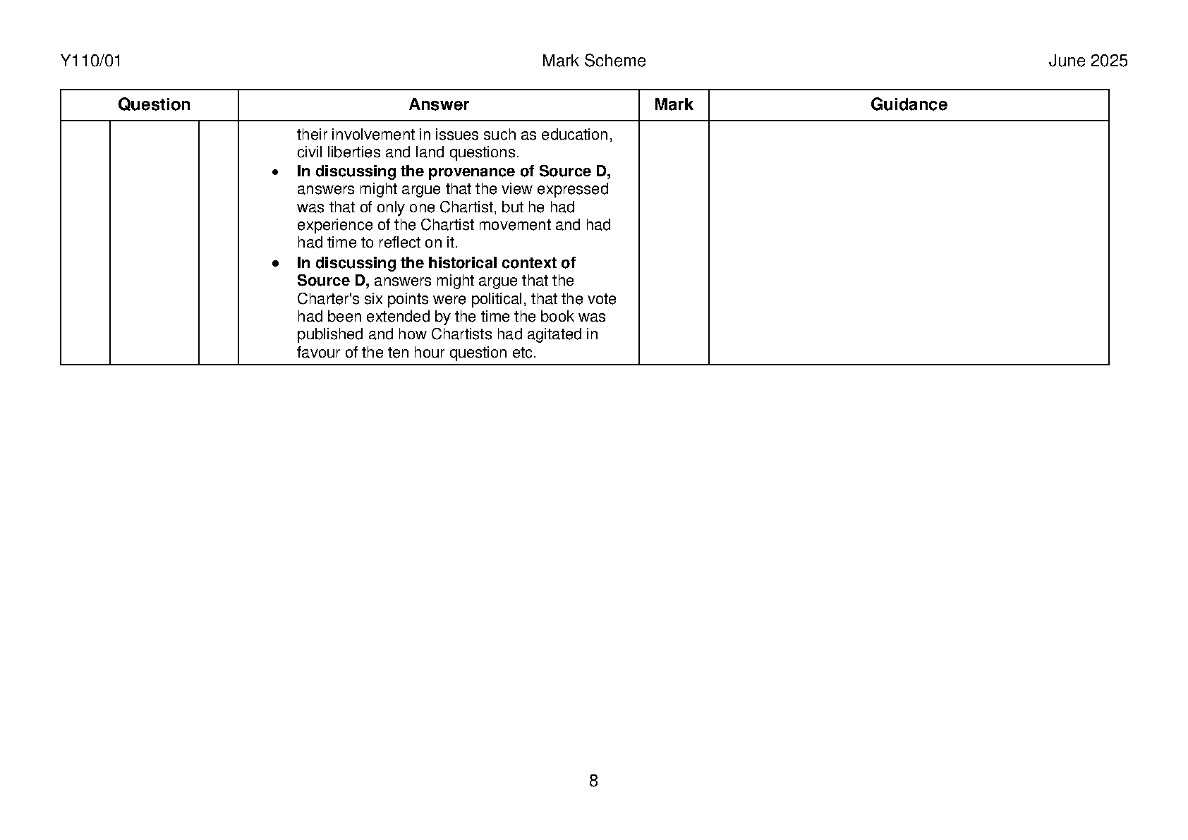 2025 OCR A Level History A Paper 1 and Mark Scheme Combined (Y110/01 From Pitt to Peel 1783–1853)