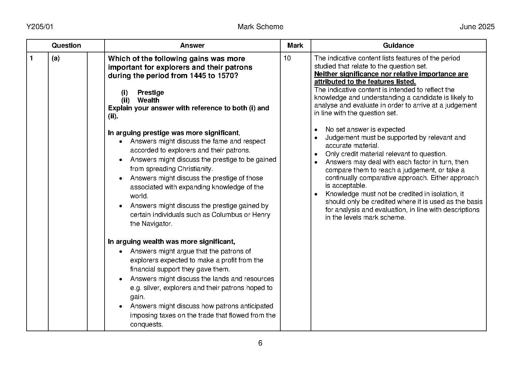 2025 OCR A Level History A Paper 1 and Mark Scheme Combined (Y205/01 Exploration, Encounters and Empire 1445–1570)