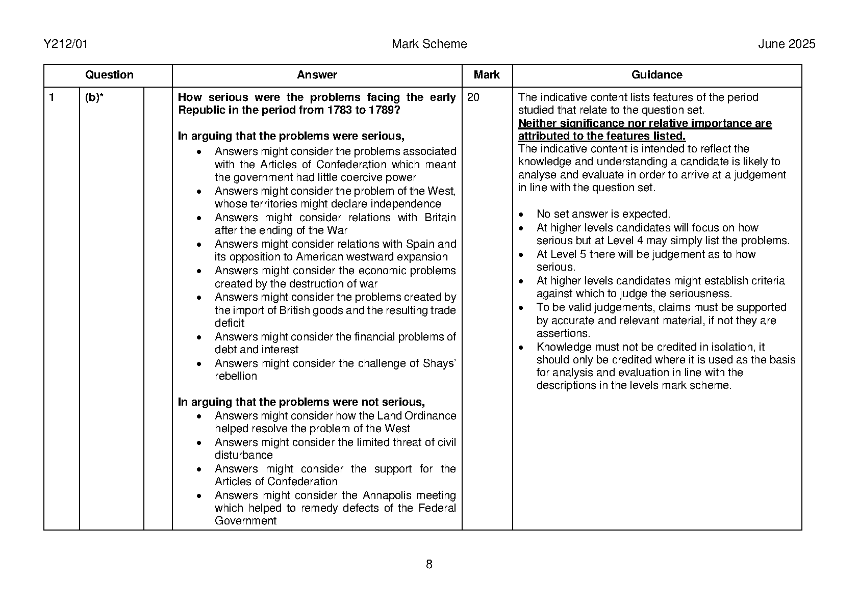 2025 OCR A Level History A Paper 1 and Mark Scheme Combined (Y212/01 The American Revolution 1740–1796)