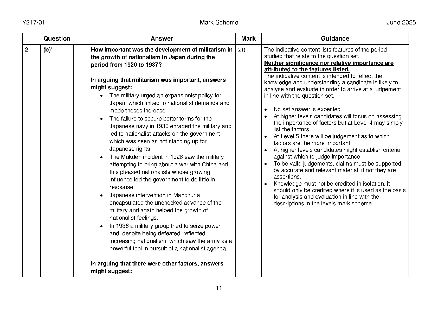 2025 OCR A Level History A Paper 1 and Mark Scheme Combined (Y217/01 Japan 1853–1937)