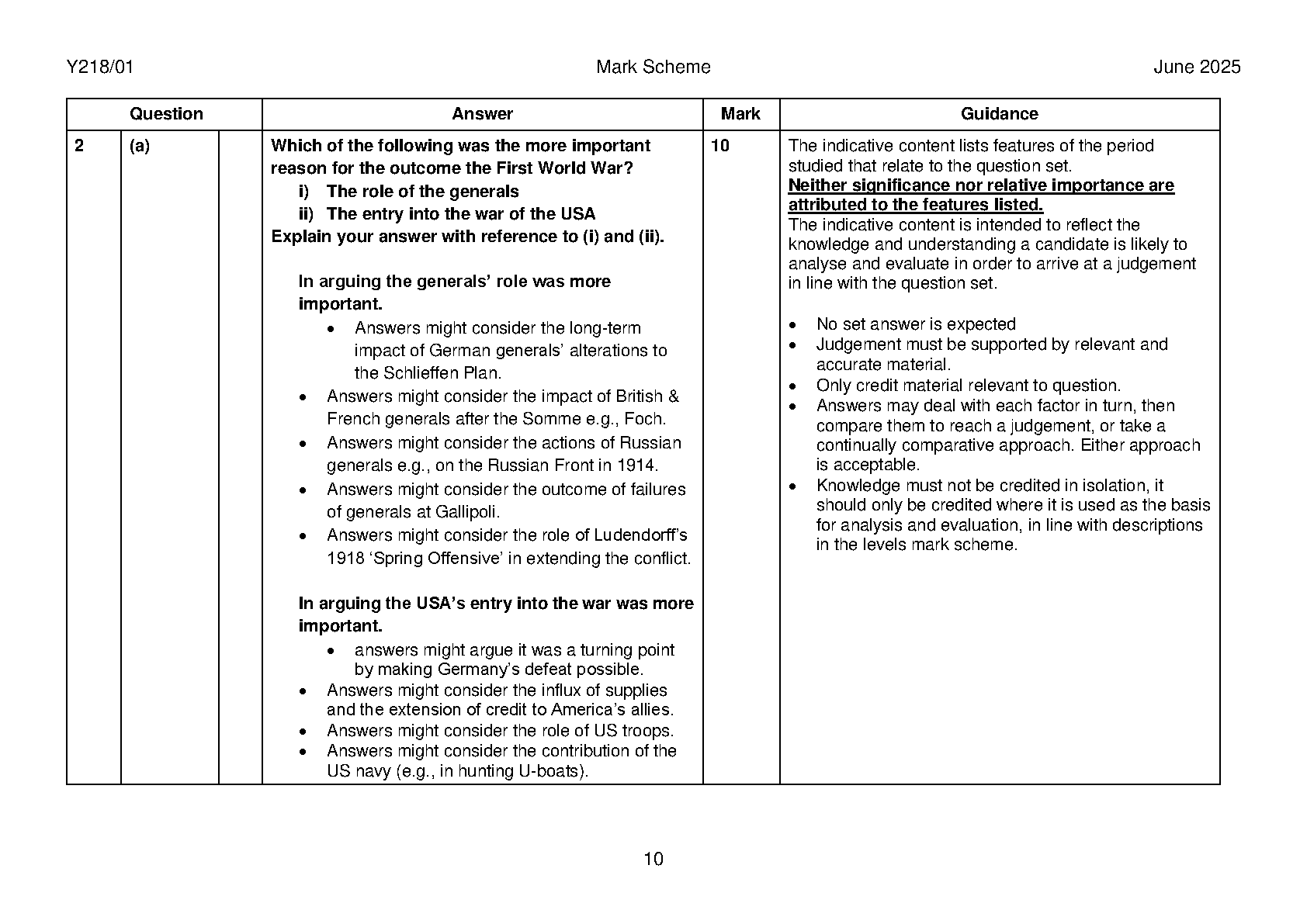 2025 OCR A Level History A Paper 1 and Mark Scheme Combined (Y218/01 International Relations 1890–1941)