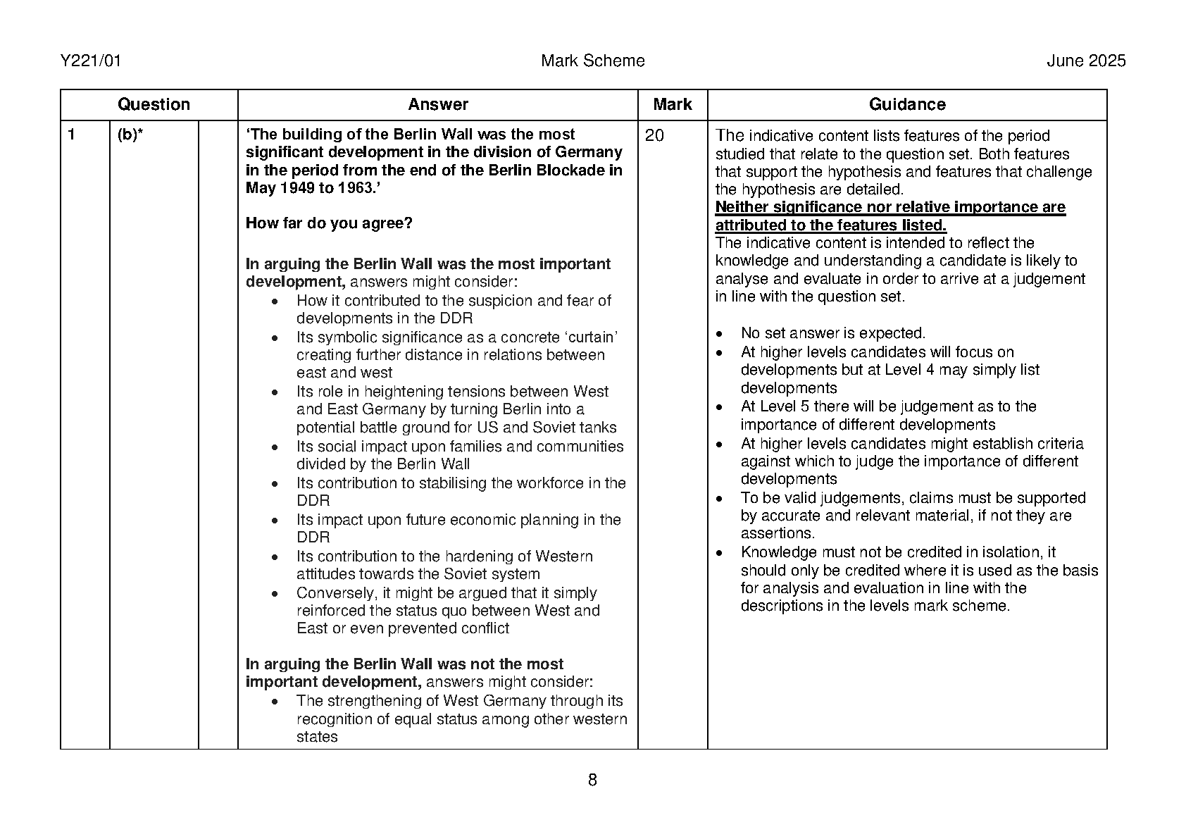 2025 OCR A Level History A Paper 1 and Mark Scheme Combined (Y221/01 Democracy and Dictatorships in Germany 1919–1963)